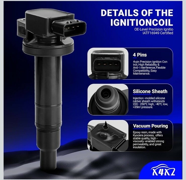 The 4X Ignition Coil+Spark Plug Set by X4XZ is designed to fit 2001-2010 Toyota Yaris, Prius, xA, and xB models with a 1.5L engine. This set includes four ignition coils (UF316, C1304, 9091919021, 90919T2003) along with spark plugs. The manufacturer offers a lifetime warranty and the parts are interchangeable with other brands like ADT31494C and GN10312. This high-quality ignition system component is essential for maintaining optimal performance and efficiency in your vehicle.
