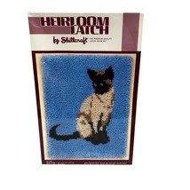 Vintage Shillcraft Heirloom Latch hook kit ?Blue Eyes? No. 1414. Features a Siamese cat design for a 20? x 27? (51 x 69 cm) rug or wall hanging. Kit includes pre-cut acrylic DuPont Orlon yarn, printed canvas, and easy instructions. Still factory sealed in original packaging with some shelf wear to plastic wrap. A nostalgic craft kit for collectors or anyone who loves DIY needlework, latch hook, or cat-themed decor. Made in the USA.