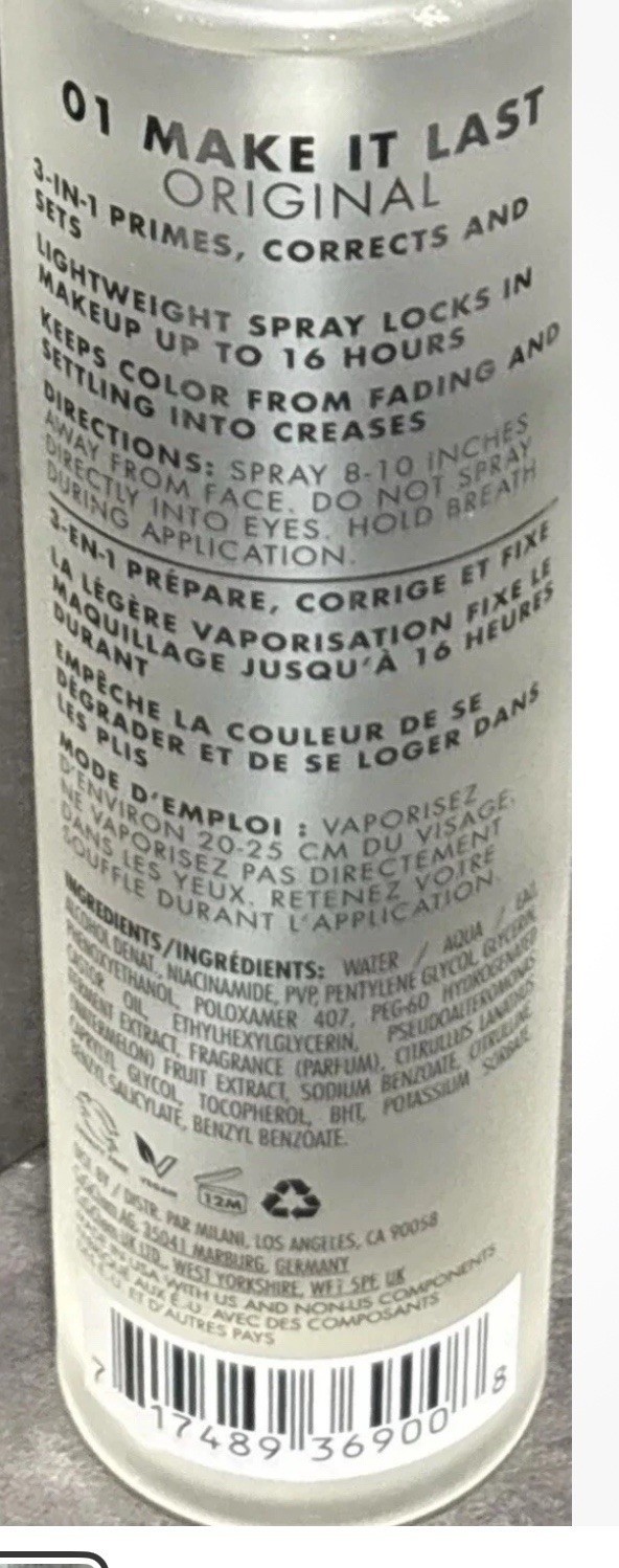 2 Milani Make It Last Original Natural Finish Setting Spray 6 oz Lot Of 2