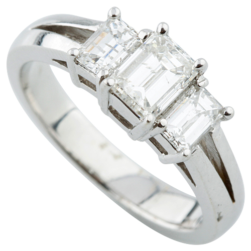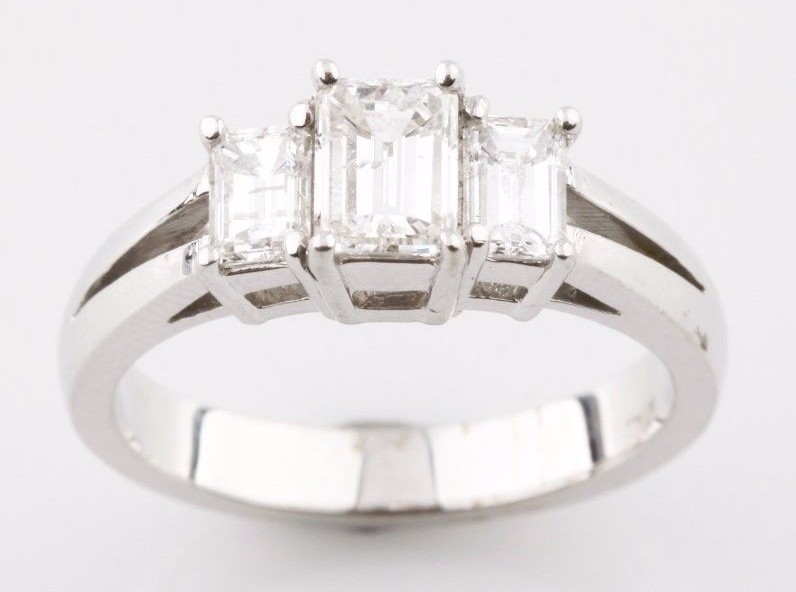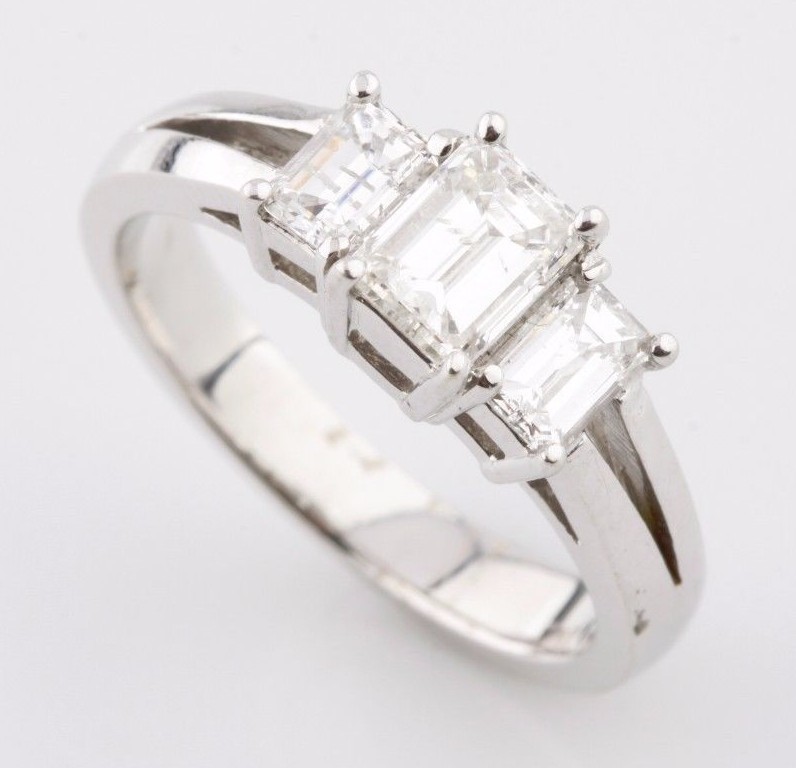 1,36 Karat Smaragdschliff 3-Steine Diamant and 38 similar items