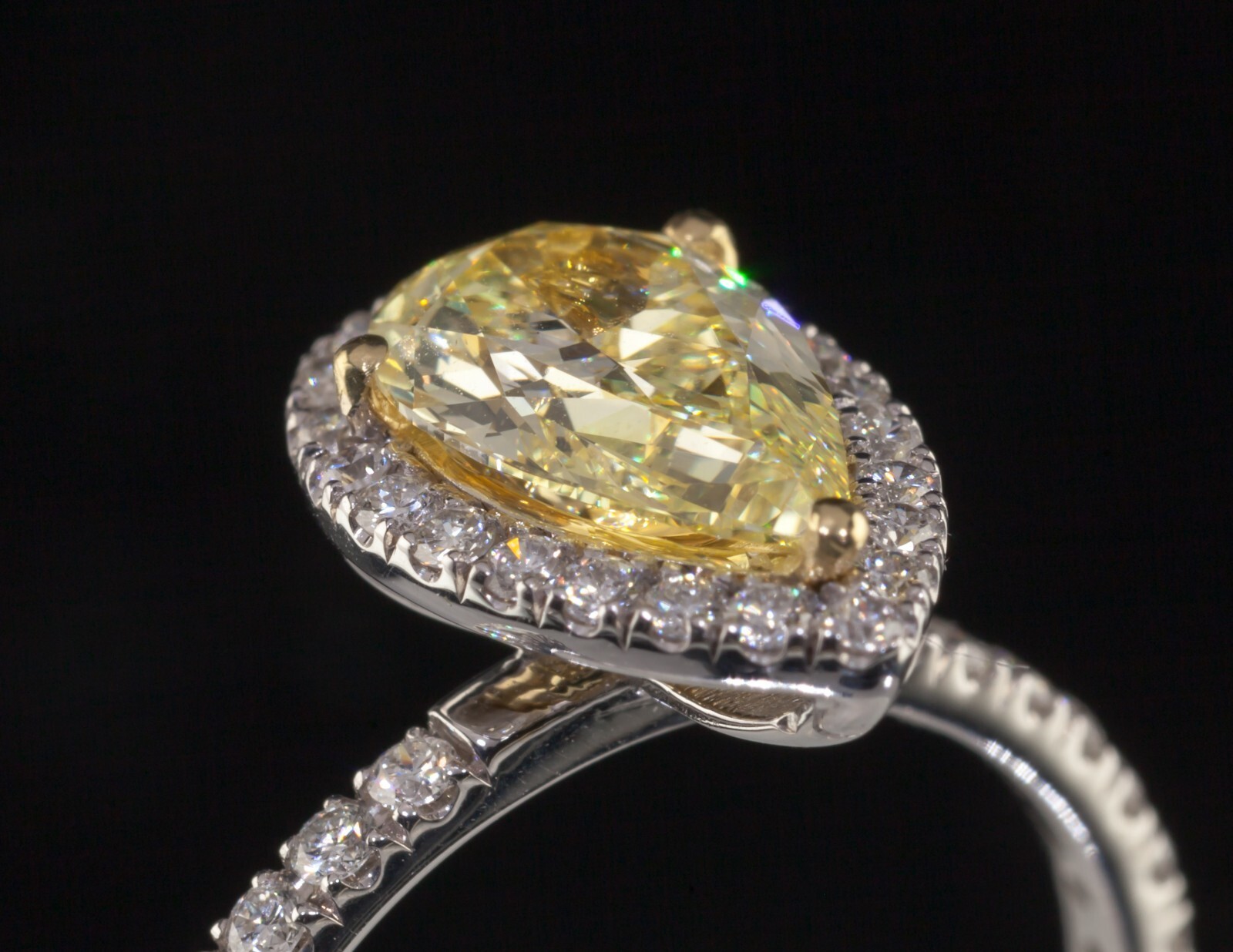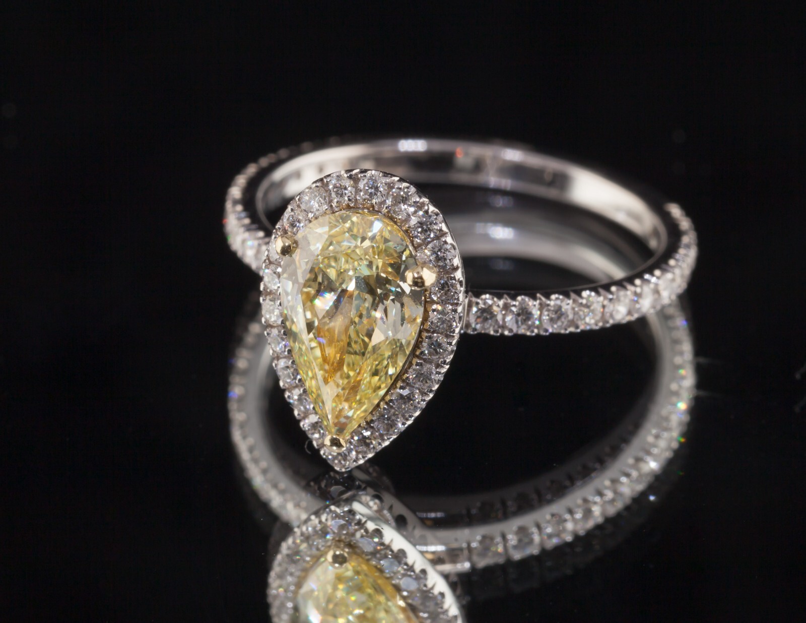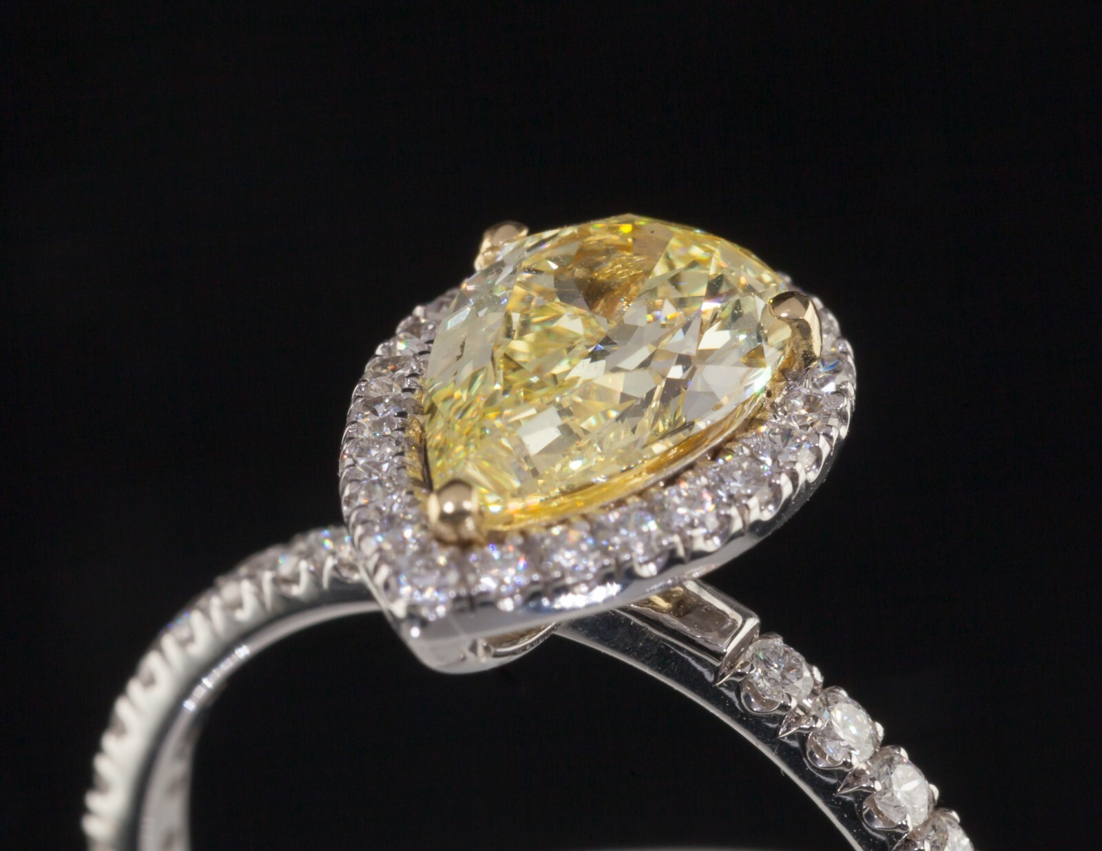 1,19 Karatbirnenform ausgefallener gelb Diamant in 18 Karat Weißgold Band.69 CT -Akzente