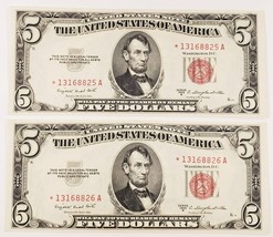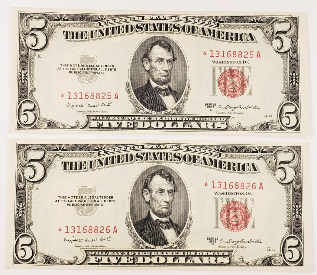 Lot of 2 Consecutive 1953-B United States Star Notes Choice UNC FR #1534