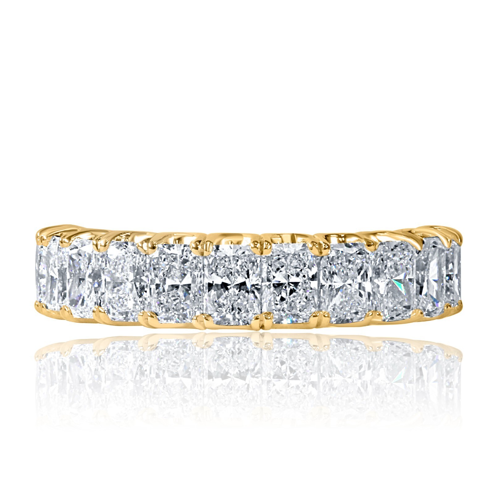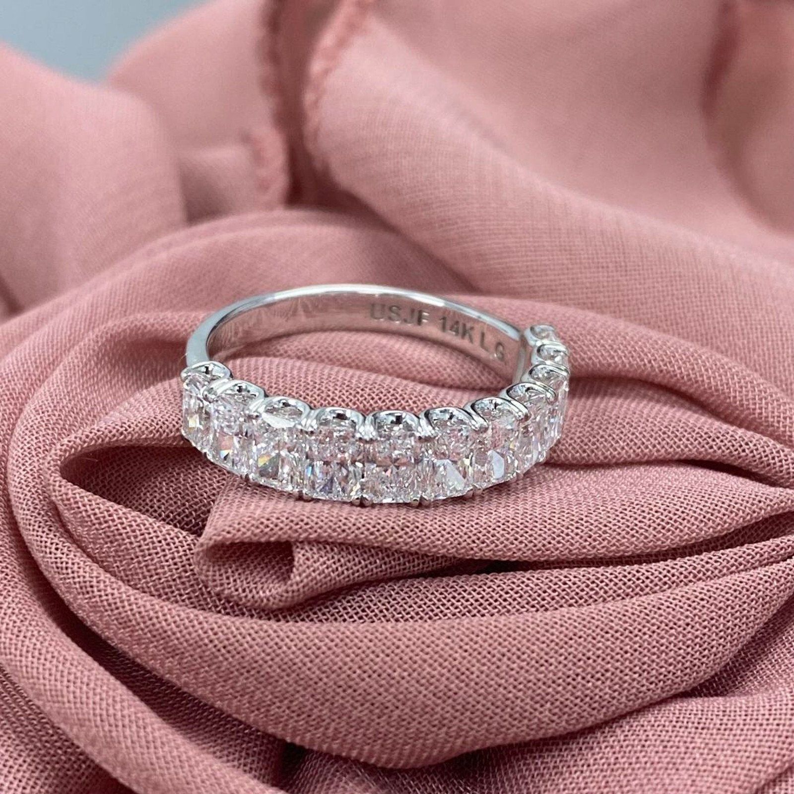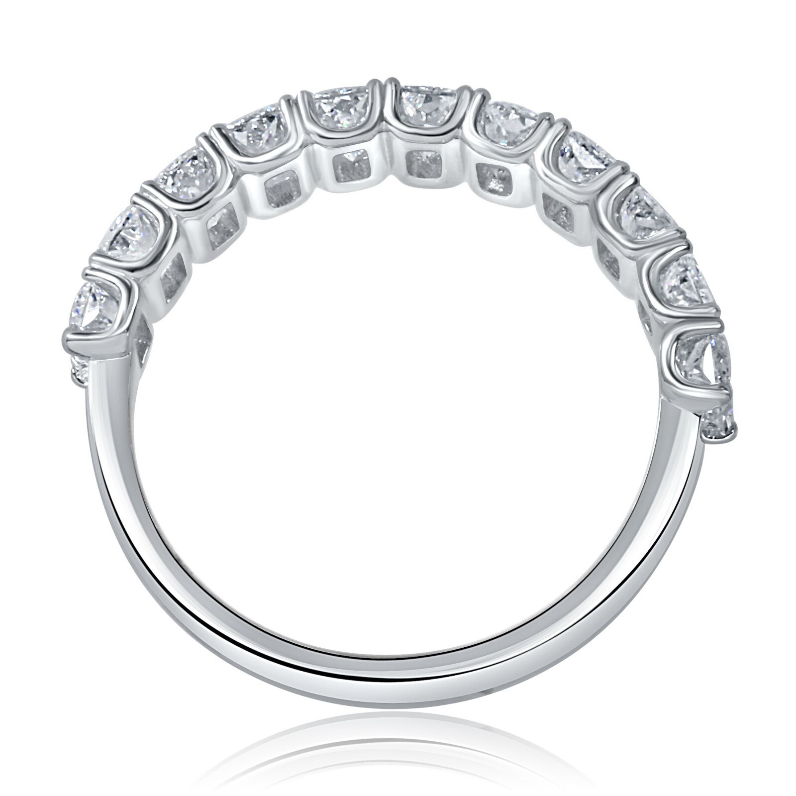 Questa fede nuziale a forma di U a forma di U e un'espressione abbagliante di amore e impegno. Realizzato in splendido oro solido 14K, presenta undici diamanti coltivati ??in laboratorio taglio radioso, ognuno sicuro in un ambiente di polo classico. Il peso totale dei carati e di 2,00 carati. Che si tratti di anniversario o di una fede nuziale, la sua bellezza senza tempo e garantita per catturare l'attenzione ovunque tu vada !!!