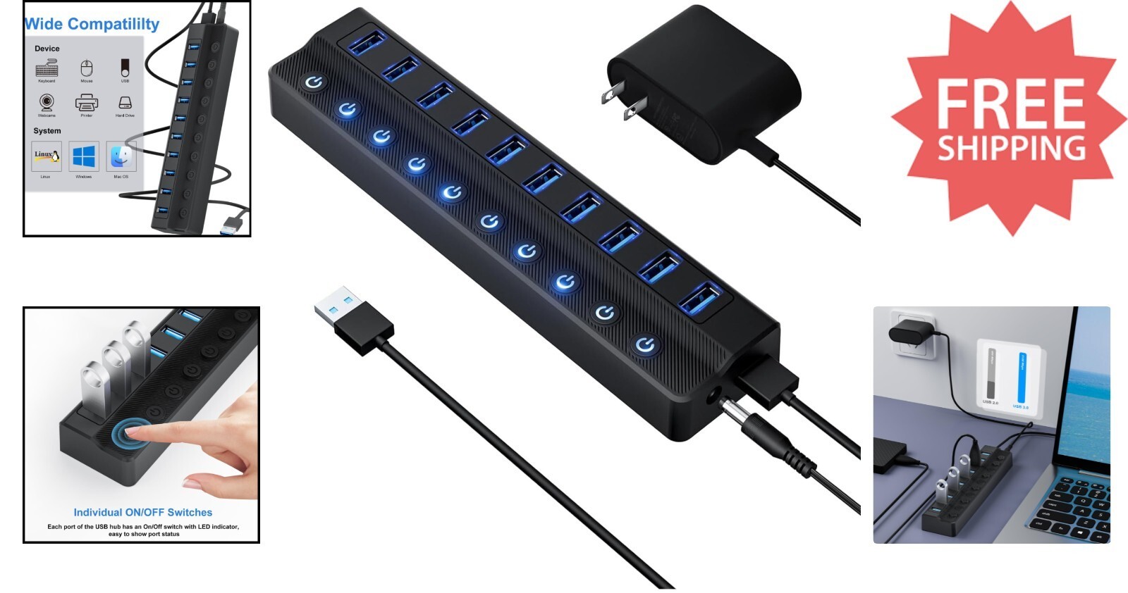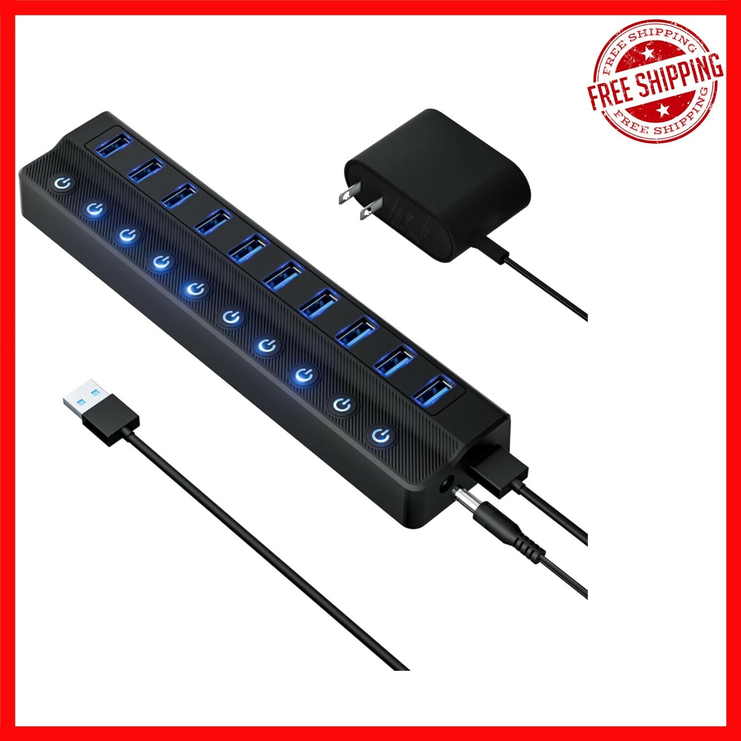 Powerful 10-Port USB 3.0 Hub for Fast Transfers & Individual Power Management