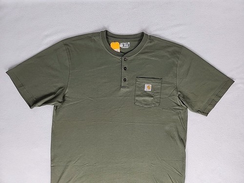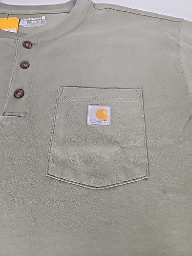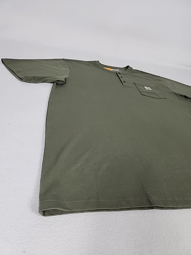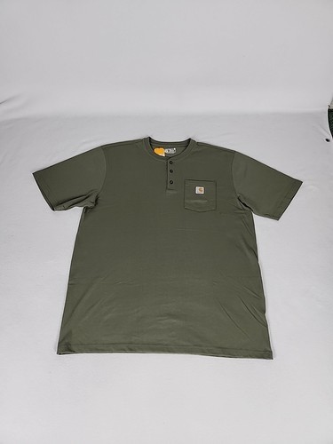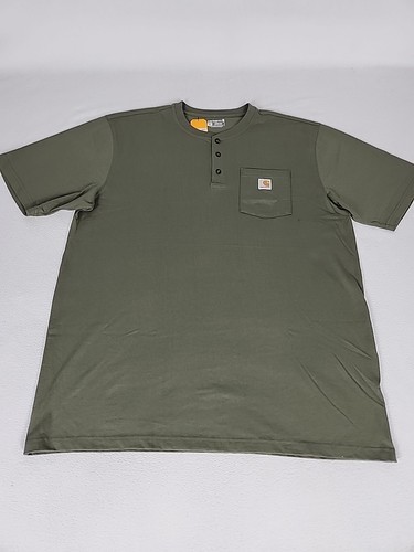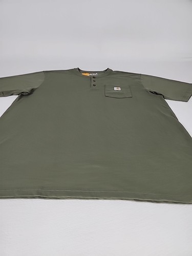 Carhartt Henley Loose Fit Short Sleeve T Shirt Size XL Tall Men's Green Heavy