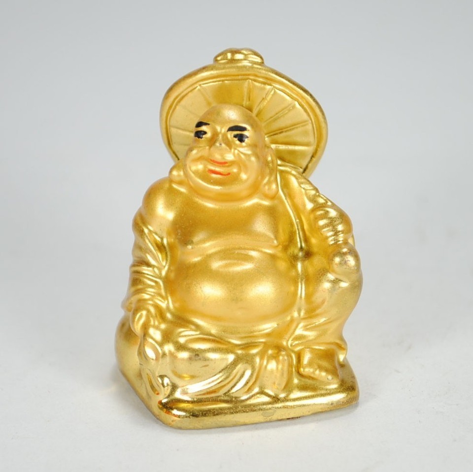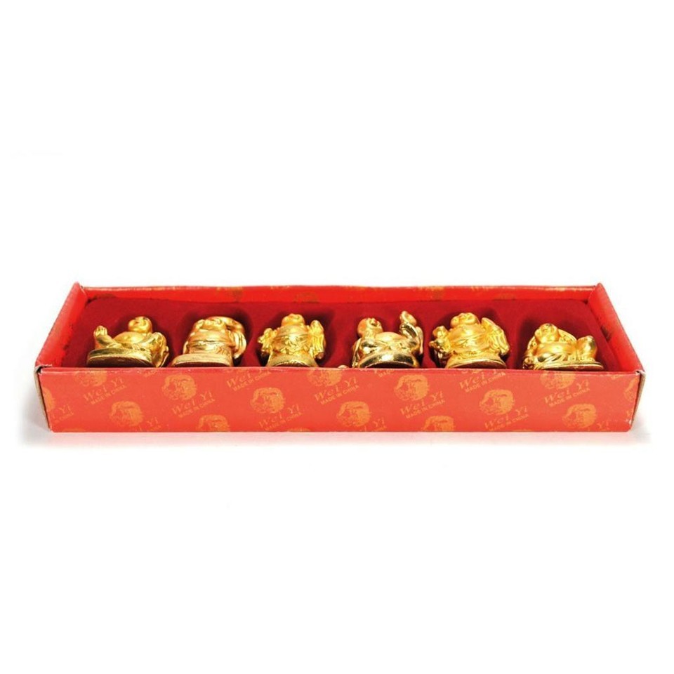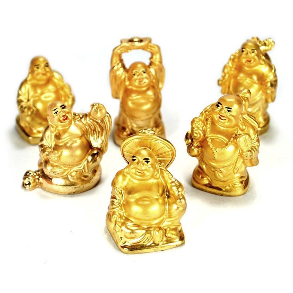 Set Of 6 Golden Happy Buddha Statues 2" Gold and similar items