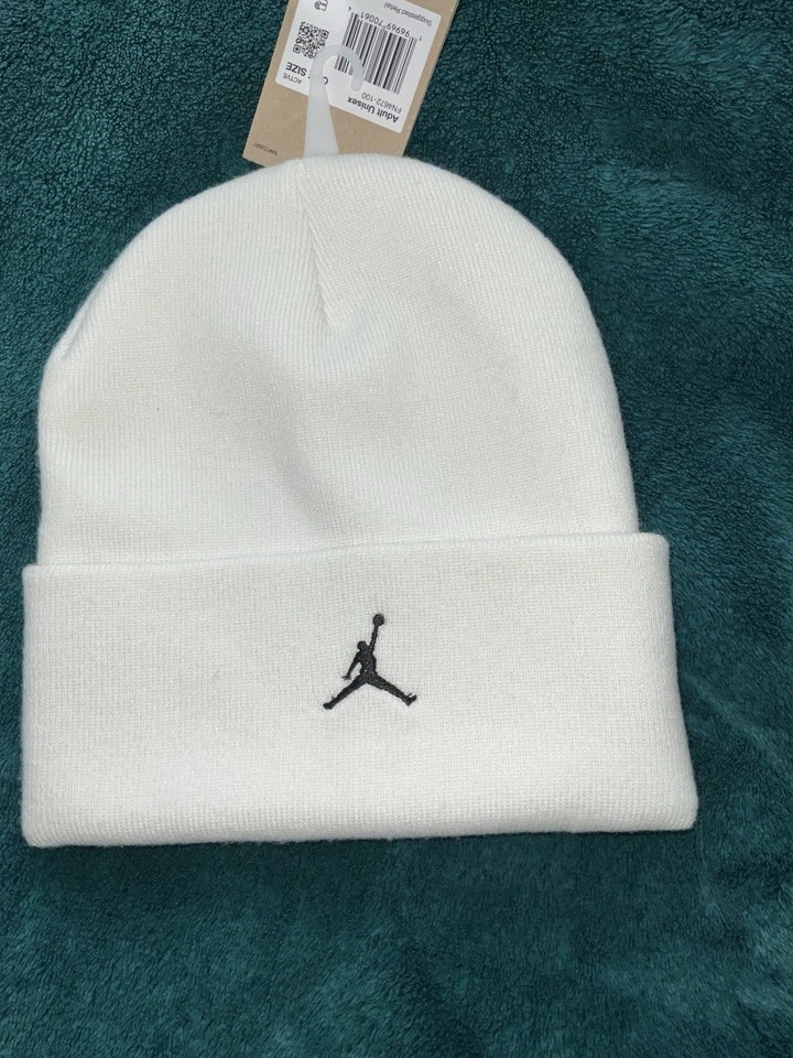 New! Nike Jordan Jumpman Logo Cuffed Beanie Hat White Color Adult Unisex