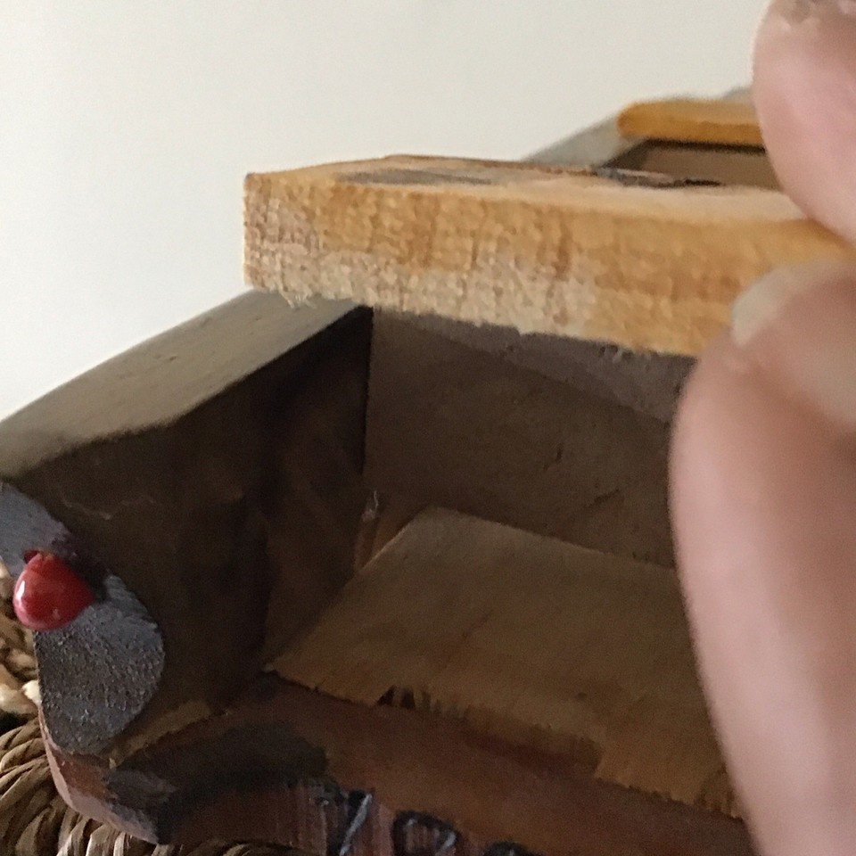 WOODEN HAND CARVED VINTAGE FORD THUNDERBIRD CAR LACQUERED, HOOD TRUNK OPEN