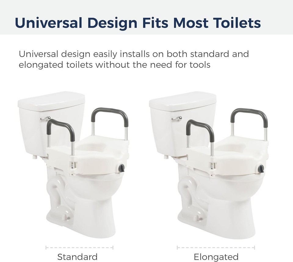 Adjustable Fit: The toilet seat riser features an adjustable design to fit most standard and elongated toilet bowls.