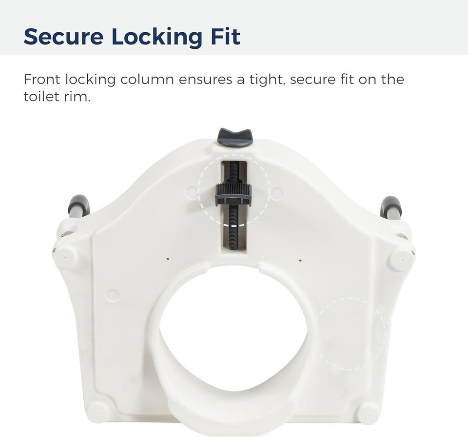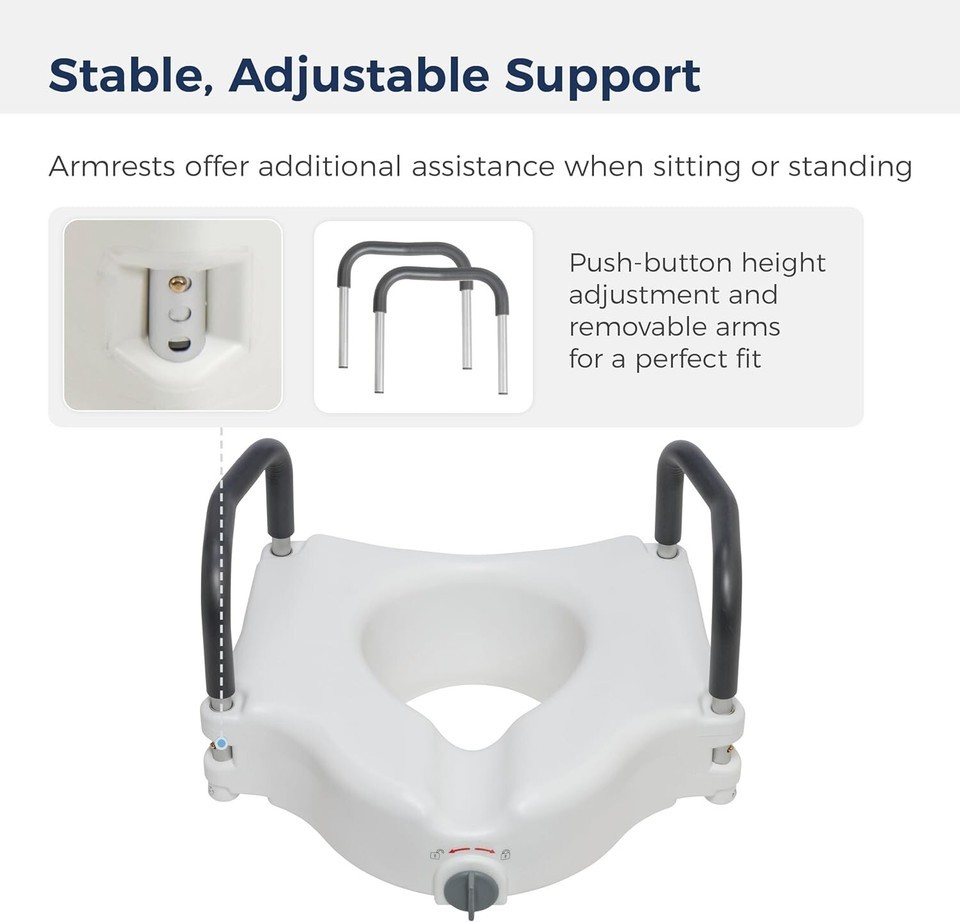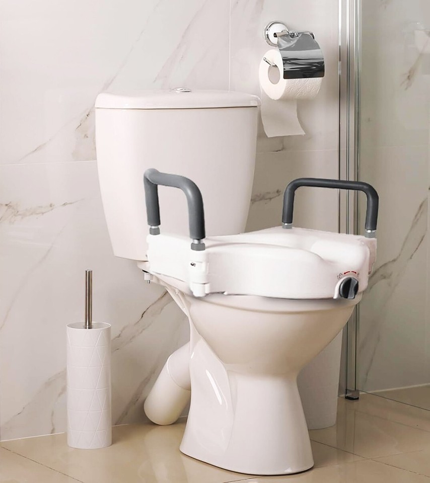 Padded Handles: Equipped with padded armrests for added stability and comfort when lowering or rising from the toilet.