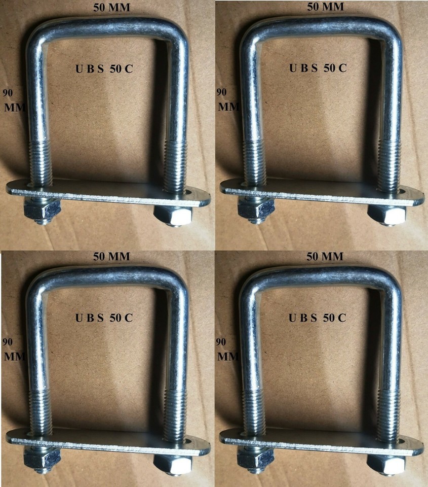 4 x square U-bolt u bolts Brackets Boat trailer 50x90x10mm Nuts & Plate UBS-50C