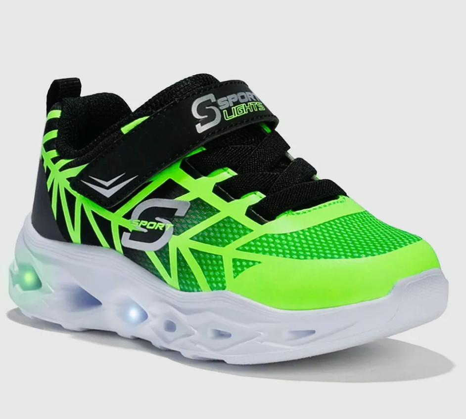S Deporte Por SKECHERS Jayden Niños Luminoso Deportivo Zapatillas Verde 5T 12T