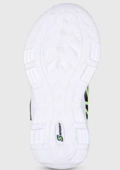 Esto es para un nuevo con Tags S Sport de Skechers Jayden Boys Lights Sporty Spaders Green, Sick Size 5T o 12 T Camina y juega todo el día con estilo deportivo y comodidad facil con S Sport por Skechers Kids Jayden. Esta zapatilla de deporte liviana presenta una impresion 3D sobre una parte superior de malla, frontal estirado en un diseño informal deportivo, correa de emparedado, plantilla acolchada y entresuela que absorbe el choque con detalles de iluminacion esculpidos.