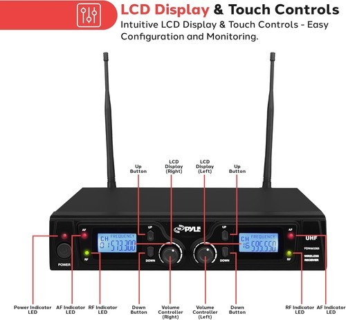Pyle PDWM3365 Wireless Mic System 16-Channel UHF LCD Display Rack Mountable