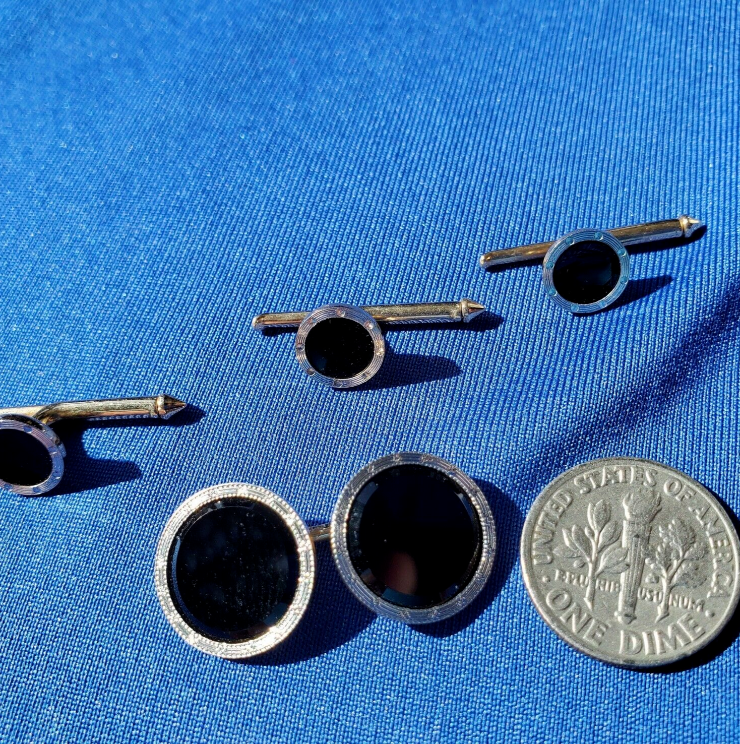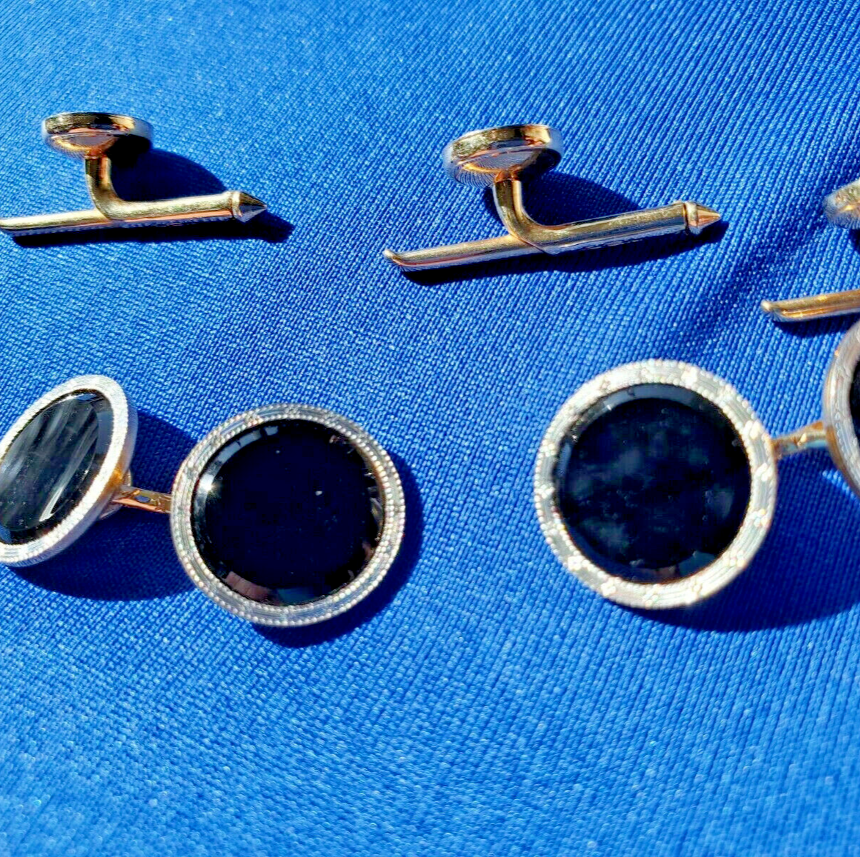 Elegant Vintage Deco Onyx Platinum Rim Cuff Links 14k Gold Gatsby Era Buttons