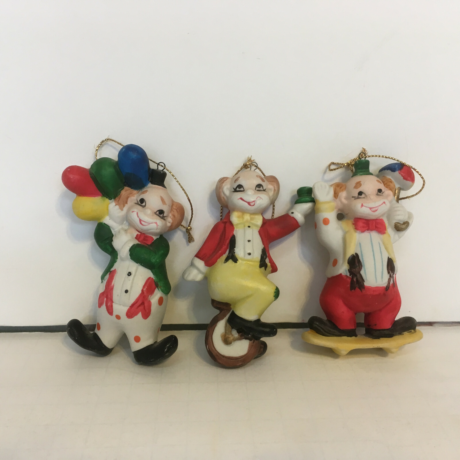 vintage 3 piece circus clown ornaments