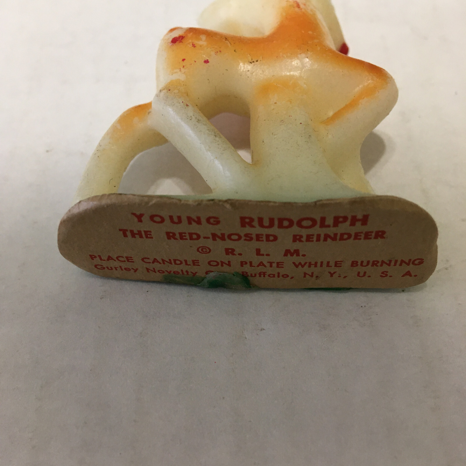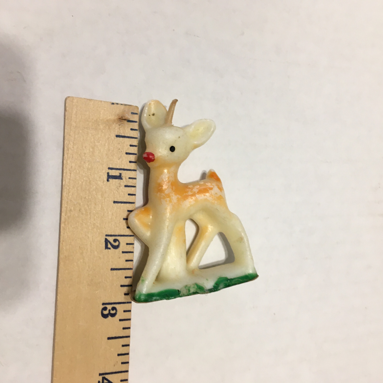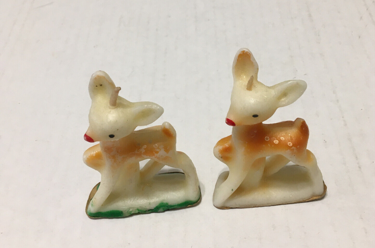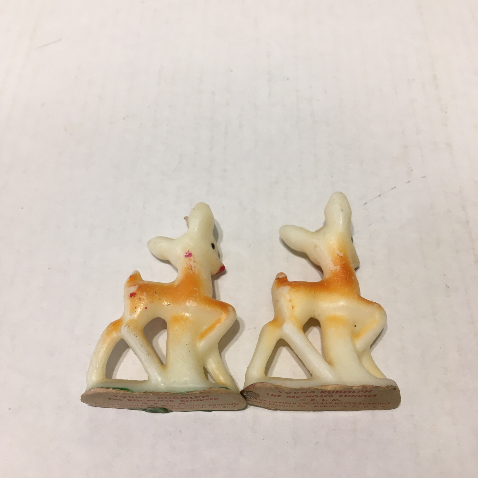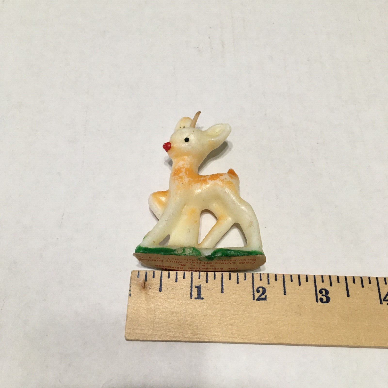 Vintage deer fawn young Rudolph the red nose reindeer Christmas candles