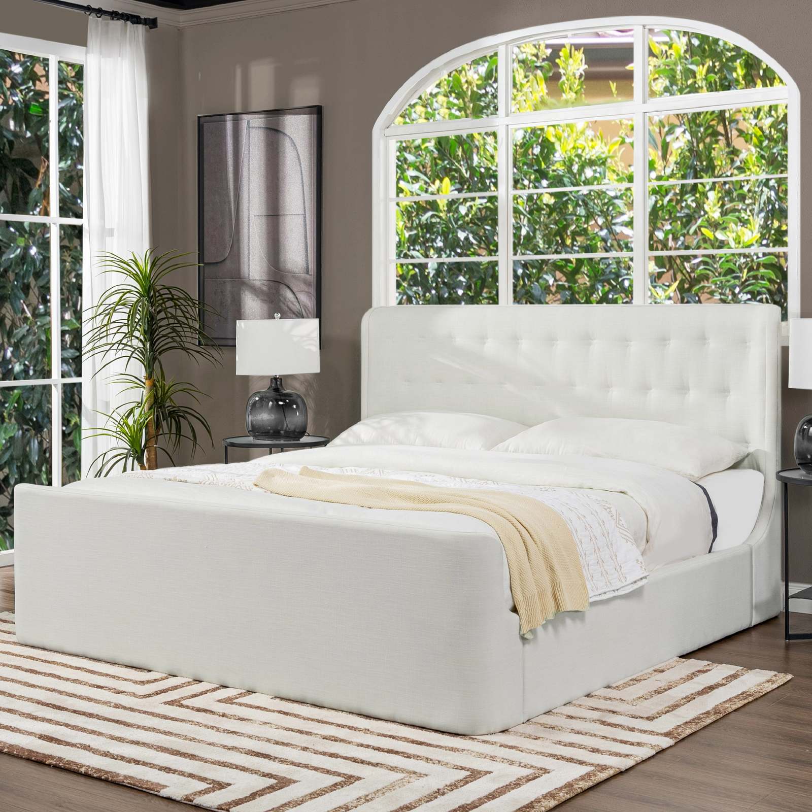 Brooks King Contemporary Tufted Shelter Bed, Antique White Polyester