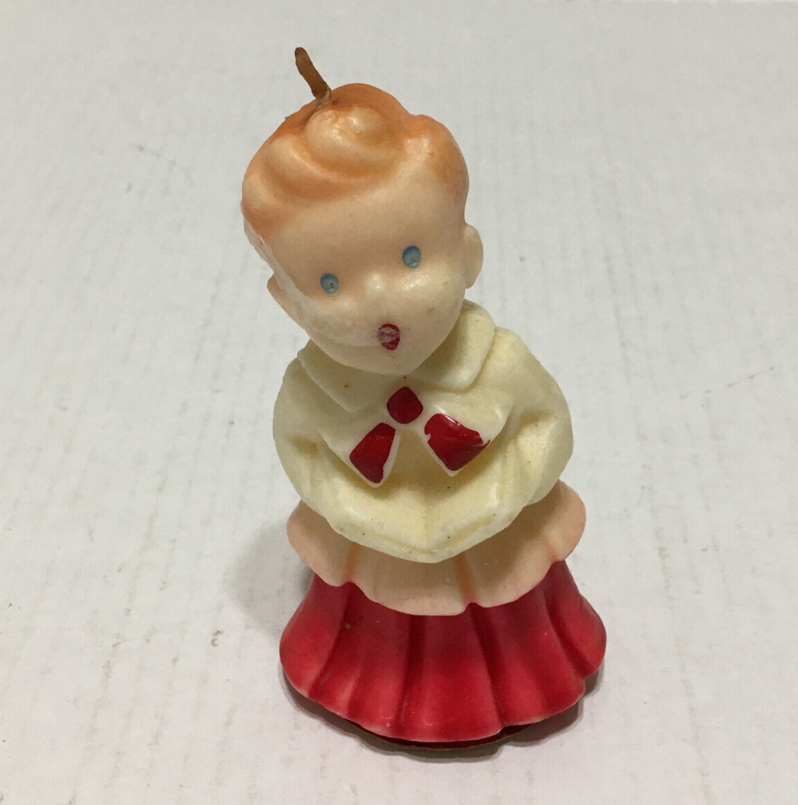 Vintage singing choir boy light hair red white outfit Gurley novelty candle
