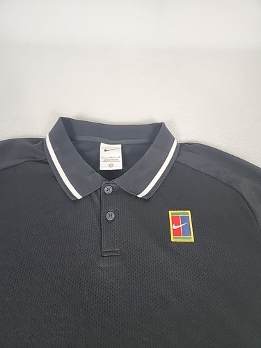 Nike Court Heritage Short Sleeve Tennis Polo Men's M Black Raglan FQ2101-010