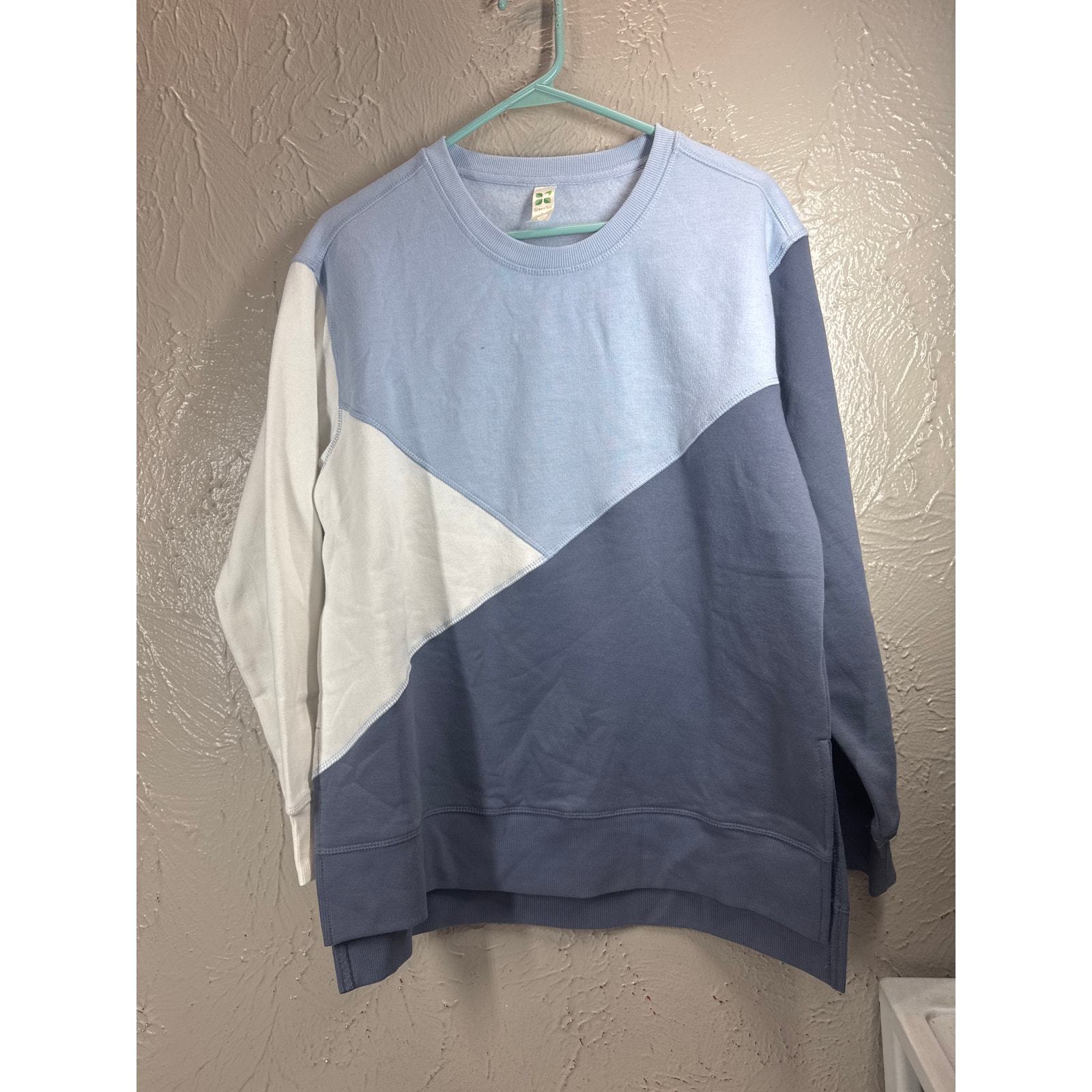 Green Tea Womens Colorblock Sweatshirt Tri-Color Side Split Seam Denim Medium