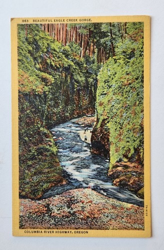 Vintage Divided Back Linen Postcard Featuring Eagle Creek Gorge Located Along the Columbia River Highway in Oregon.