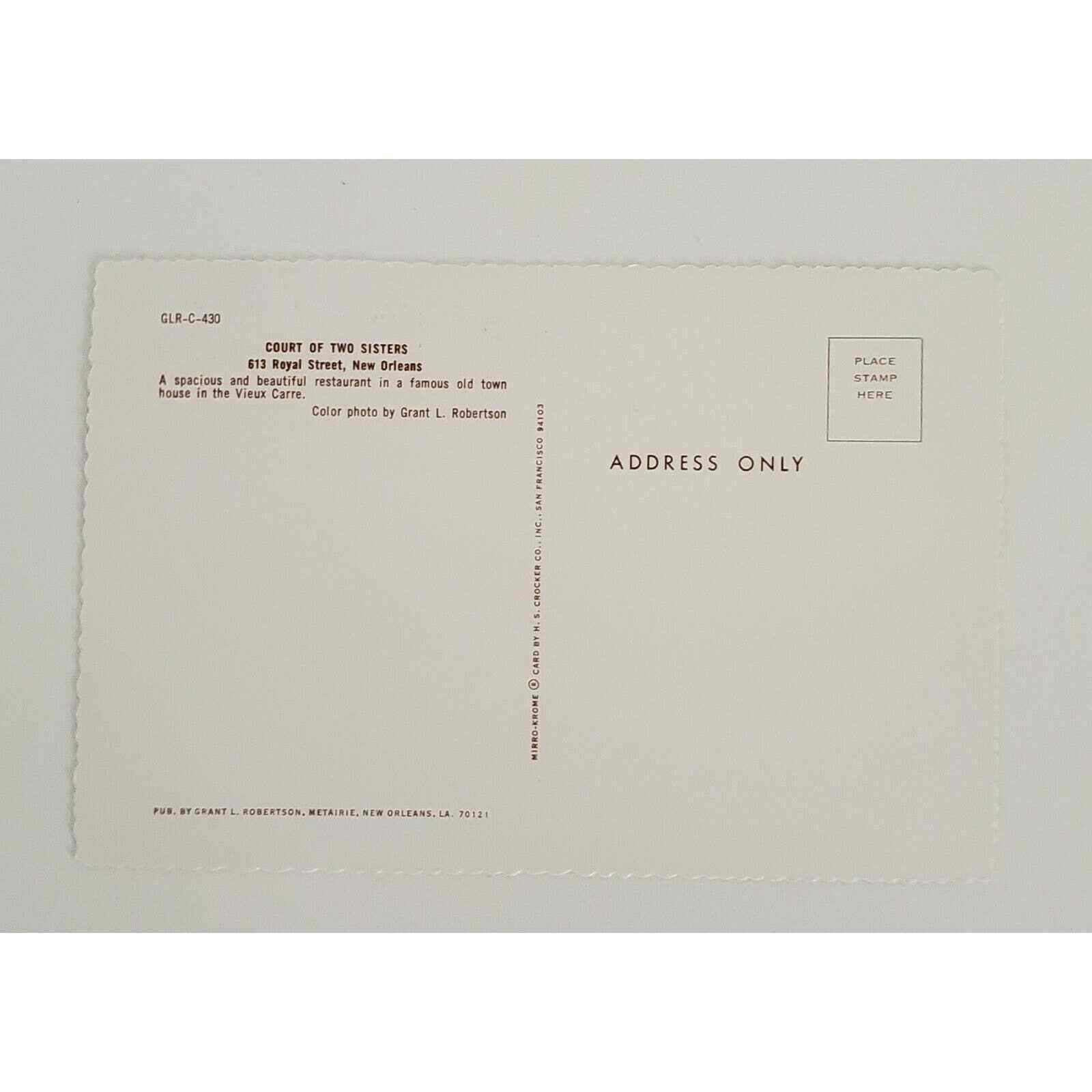 Vintage Divided Back Chrome Postcard Featuring the Court of Two Sisters Restaurant Located on Royal Street in NOLA New Orleans LA Louisiana.