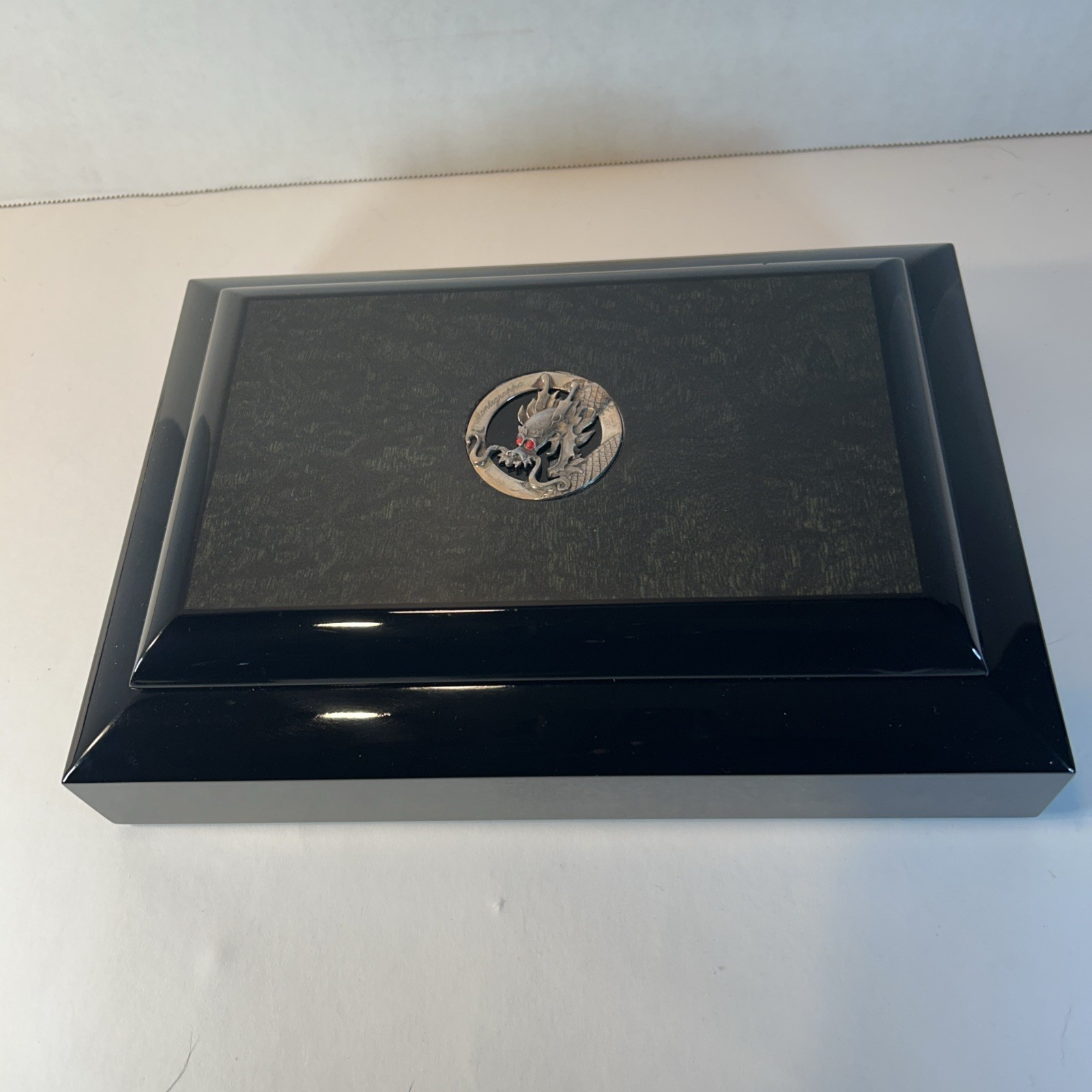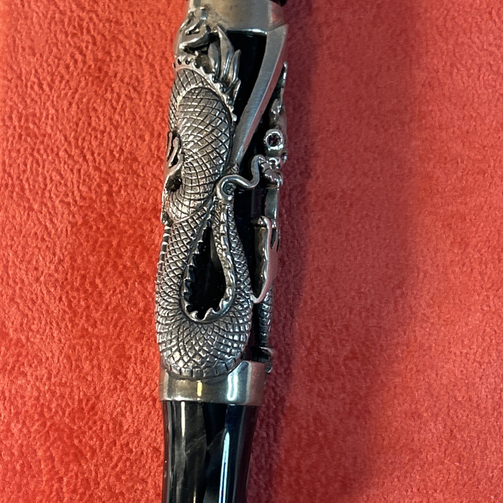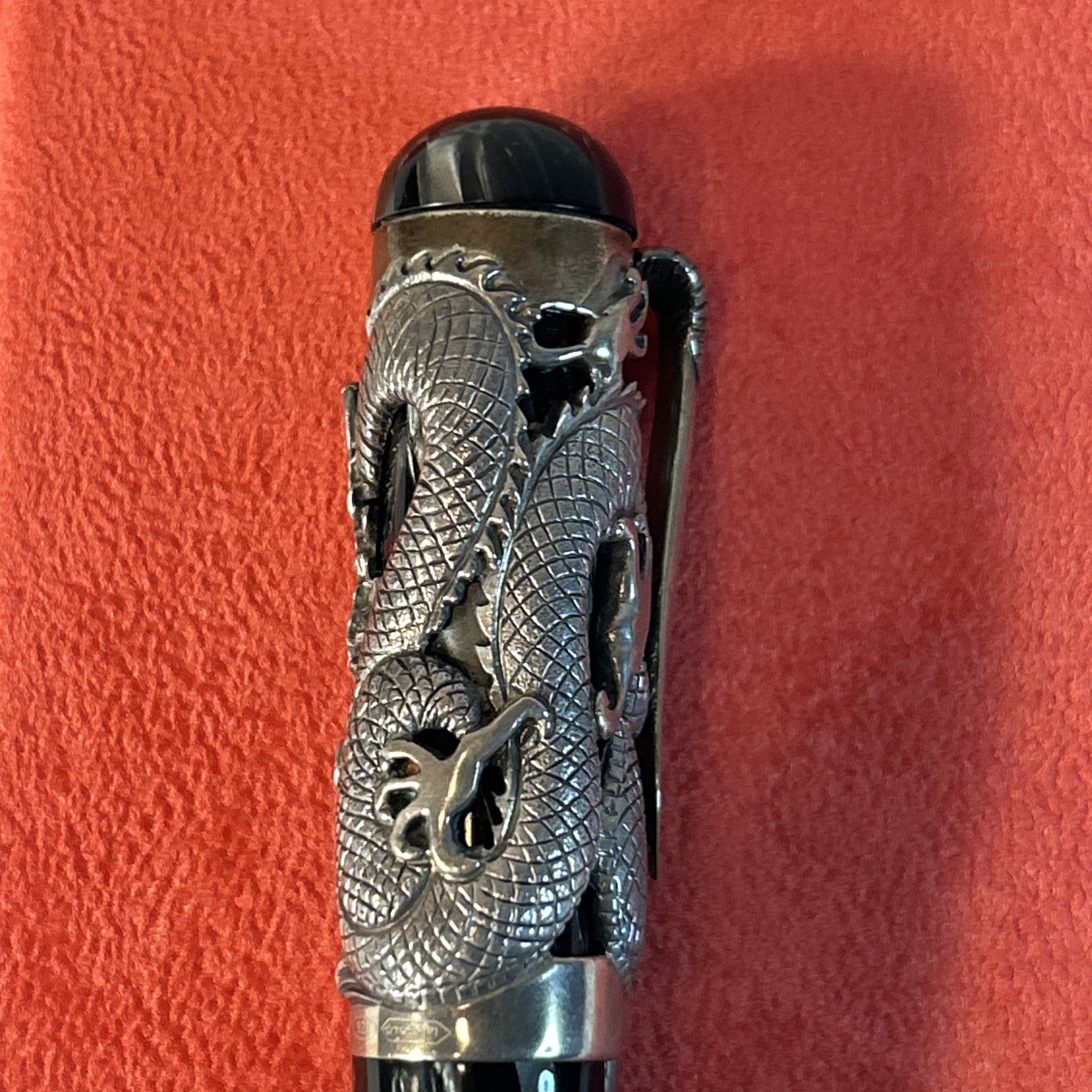 This is an ultra-rare Montegrappa ?The Dragon? fountain pen from the Oriental Zodiac Collection?limited edition #1738 of only 1912 pieces made in 1995. Featuring an intricate sterling silver dragon overlay, this handcrafted Italian masterpiece is a showpiece for any serious pen collector. Includes the original lacquered wood presentation case, outer box, certificate of authenticity, and unopened booklets. Please note: one hinge on the box was professionally reinforced after a common screw issue?see final photo for close-up.