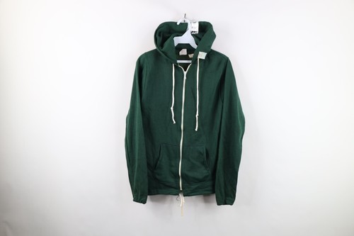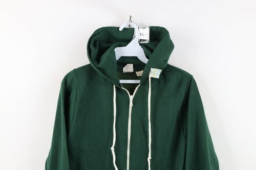 Deadstock Vintage 60s 70s Boys XL Blank Full Zip Hoodie Sweatshirt Green USA