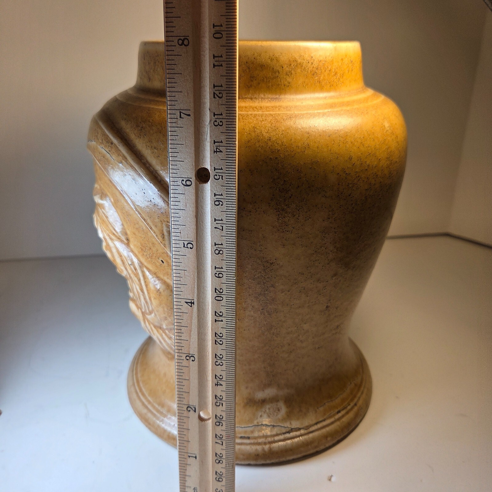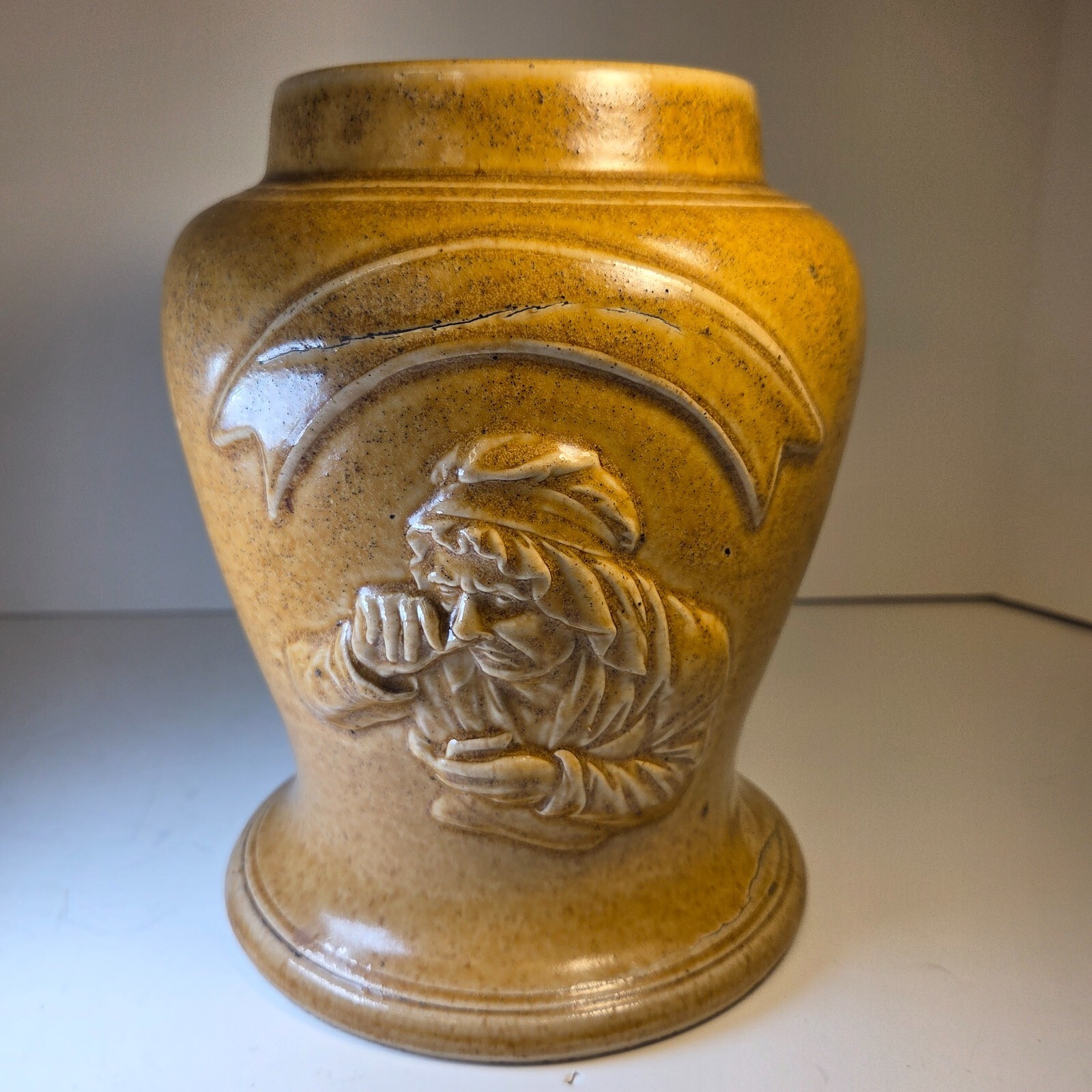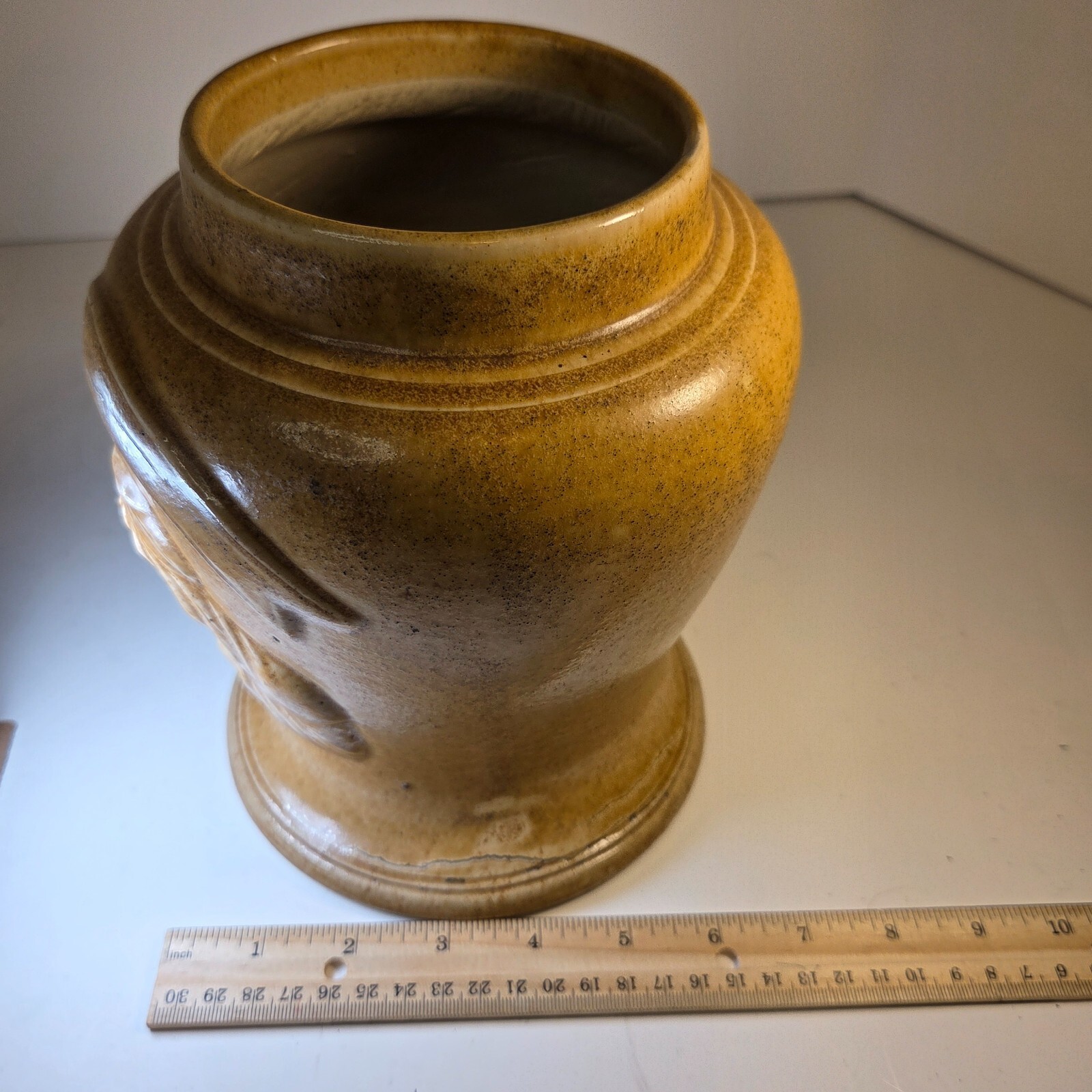 Antique Stoneware Snuff Jar 7.5" Relief Man Sniffing #2 No Lid Pre-1930