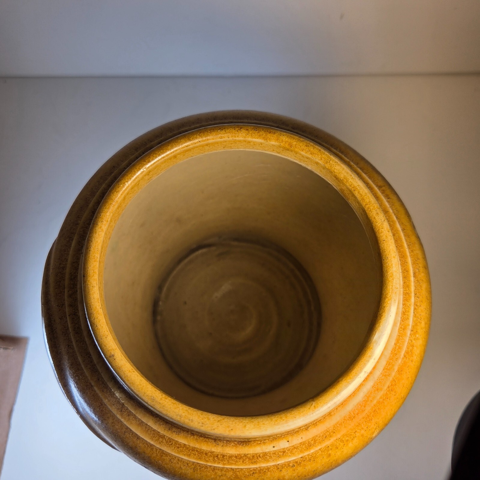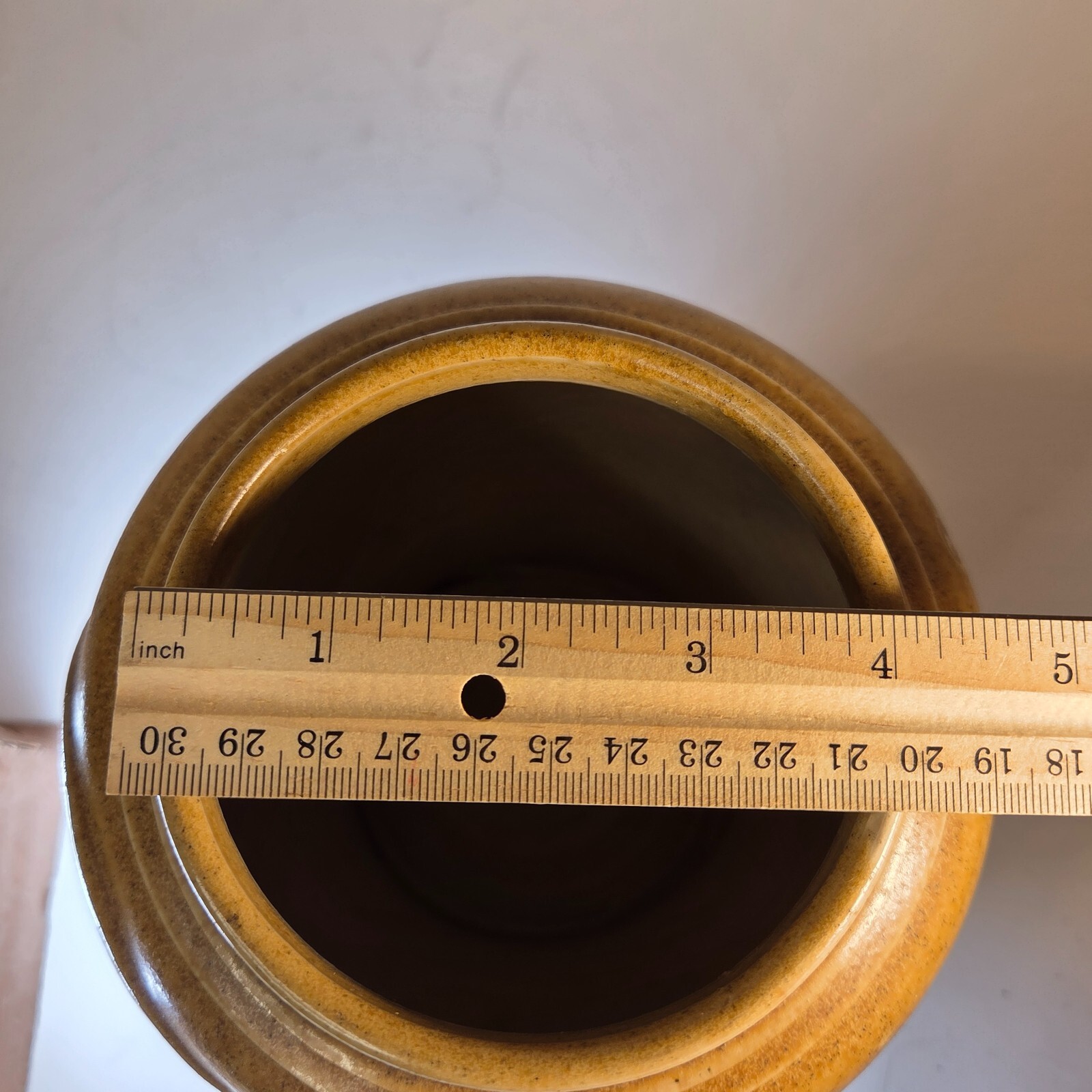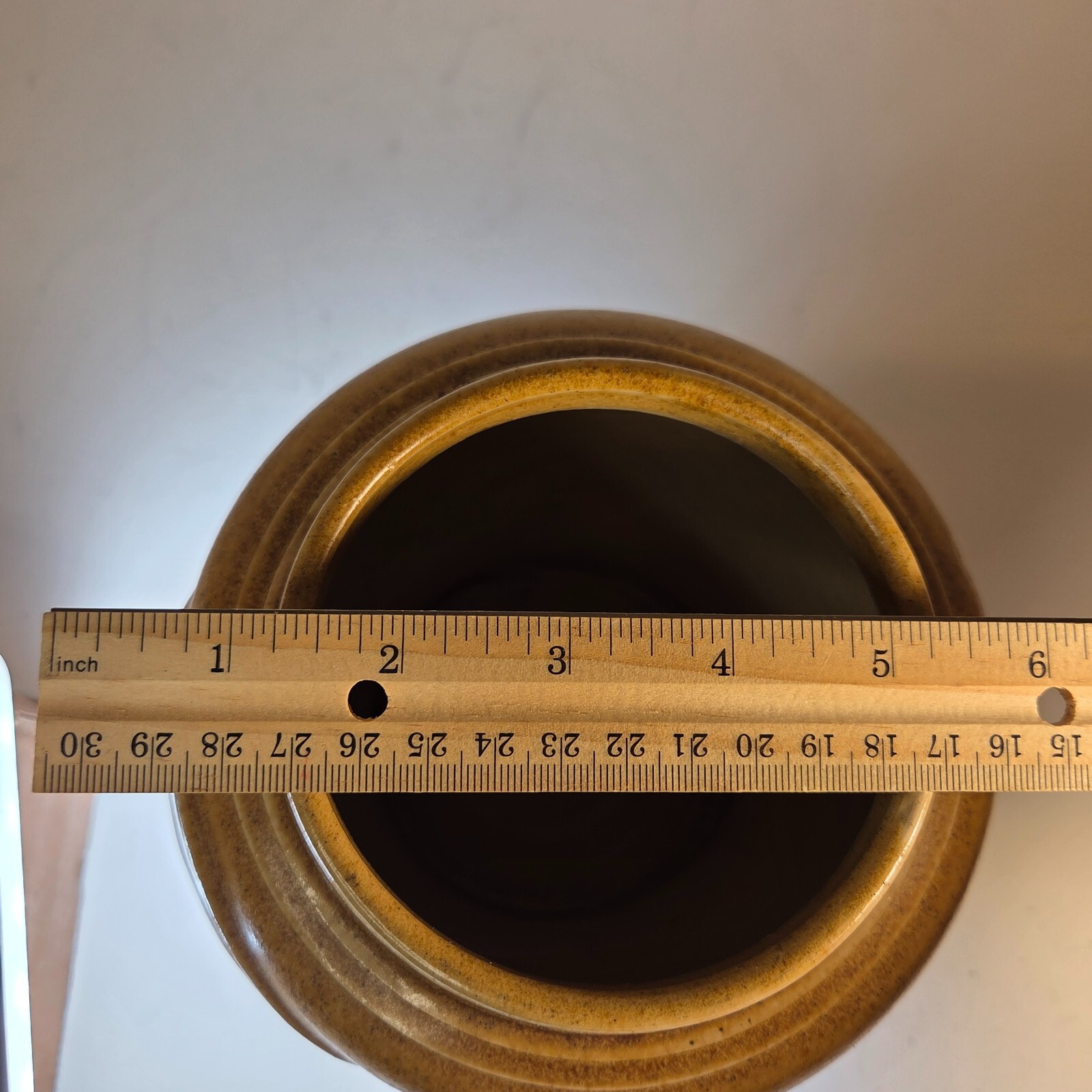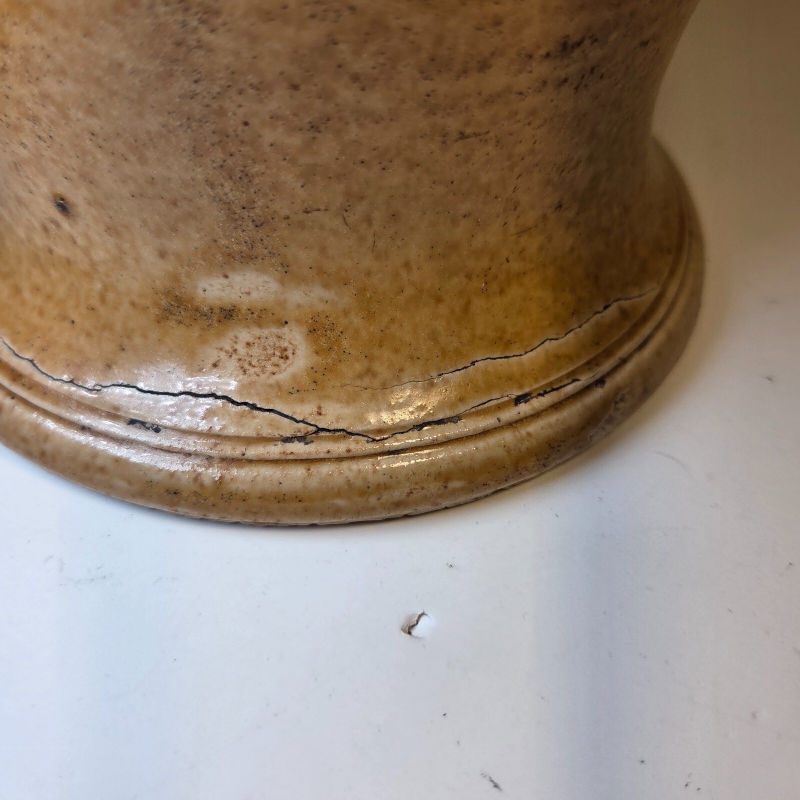 Condition: Cracks present which may be from original stoneware shrinkage; no lid included. See photos for detail.