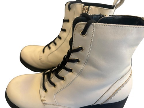 Cole Haan Women's CAMEA WP Combat Boot Ivory Leather Size 6.5