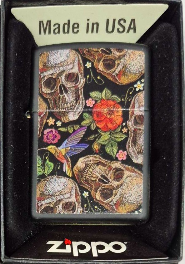 Sharp Black Floral Collage Skull Zippo and 50 similar items