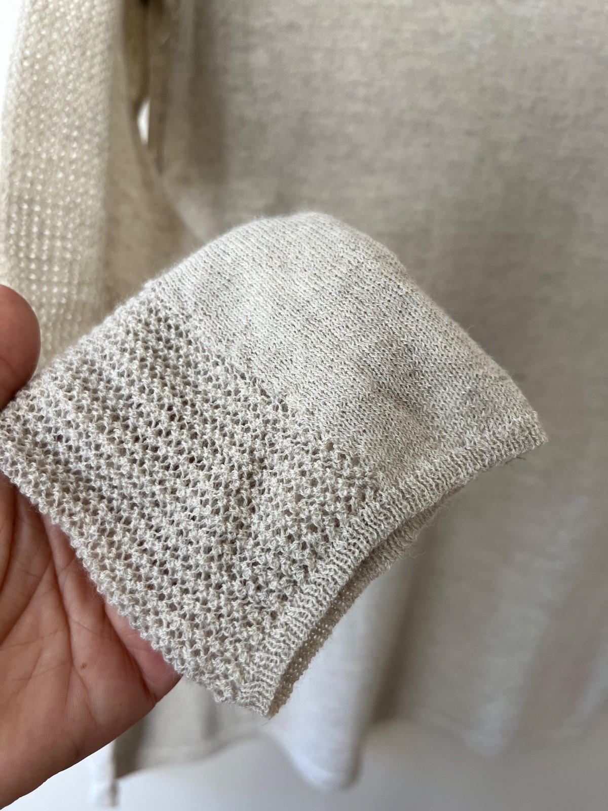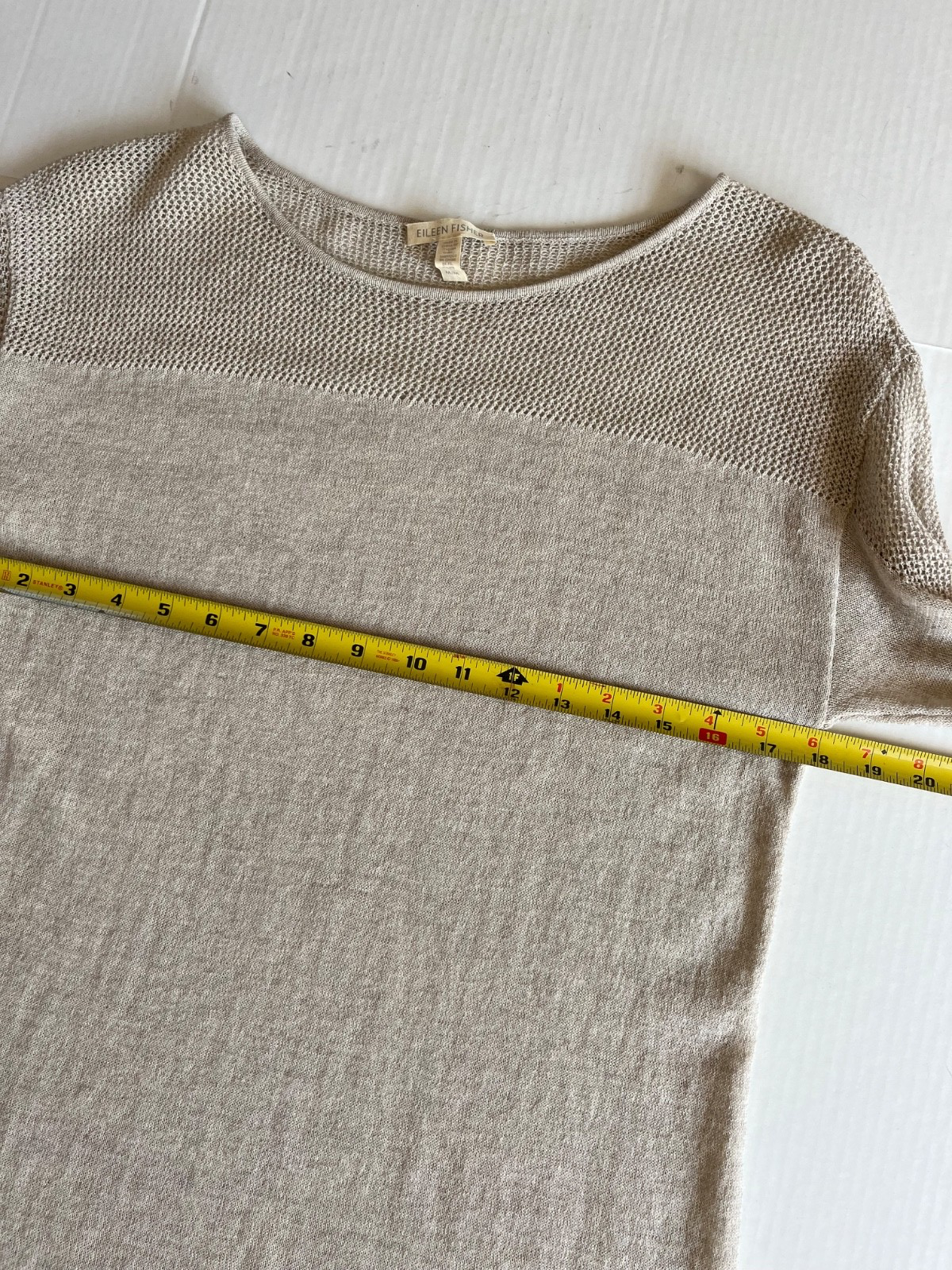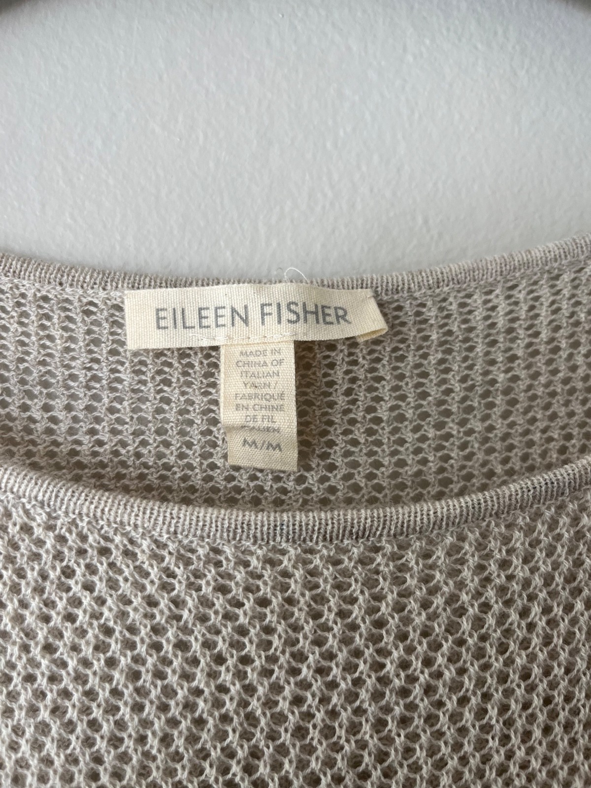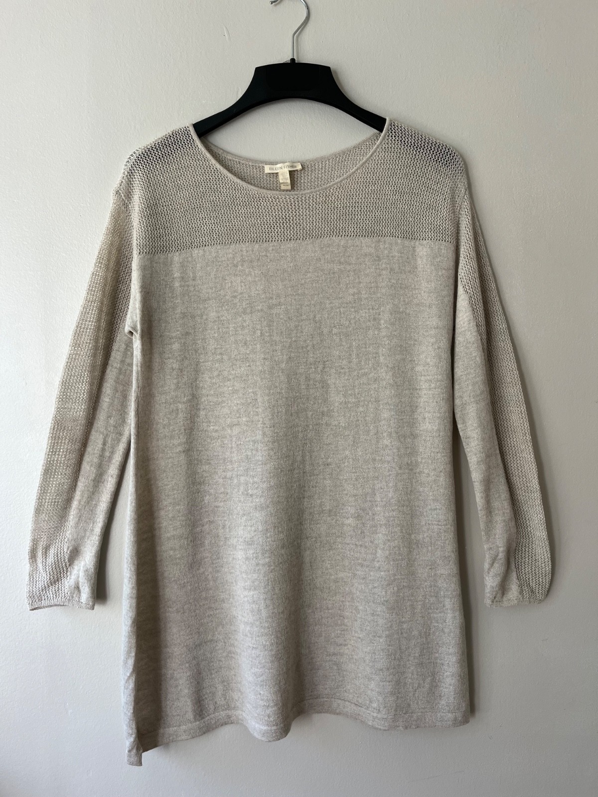 Eileen Fisher Sz M Beige Wool Tunic Long Sleeve Sweater Blouse Top Stretch Mesh