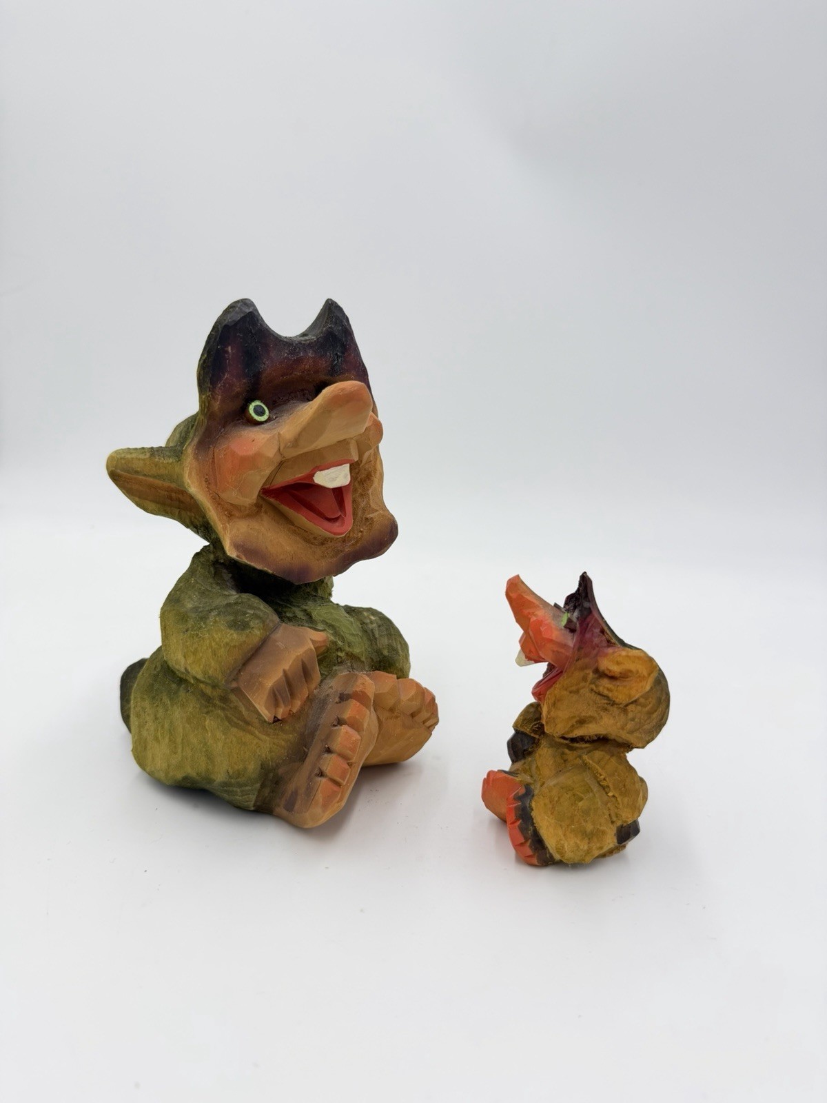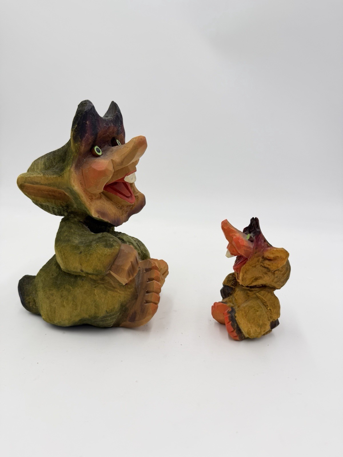 Henning Hand Carved Norwegian Troll Authentic Wooden Folk Art Figurine 6.5โ Set