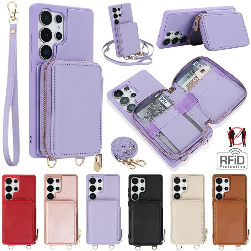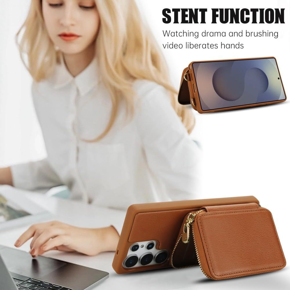 Generic case For Samsung Galaxy S21 FE (Color: Rose Gold) Leather Zipper multi W