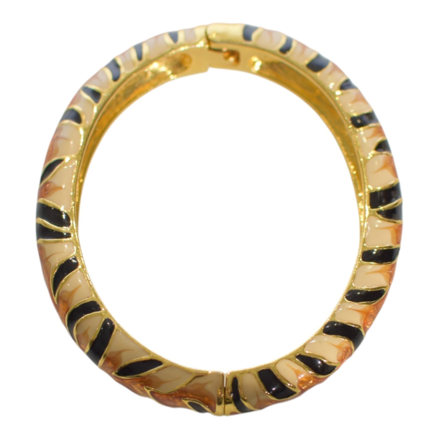 KENNETH JAY LANE Enamel Cuff Bracelet in tiger beige brown and gold animal print