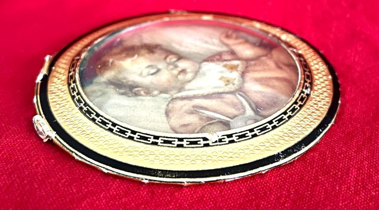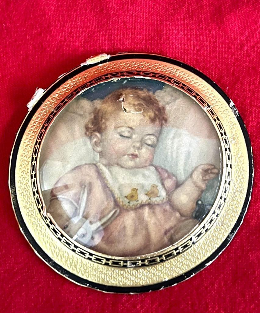 Vintage Art Deco Baby Print Litho Round Domed Convex Glass 4" Diameter Unmarked