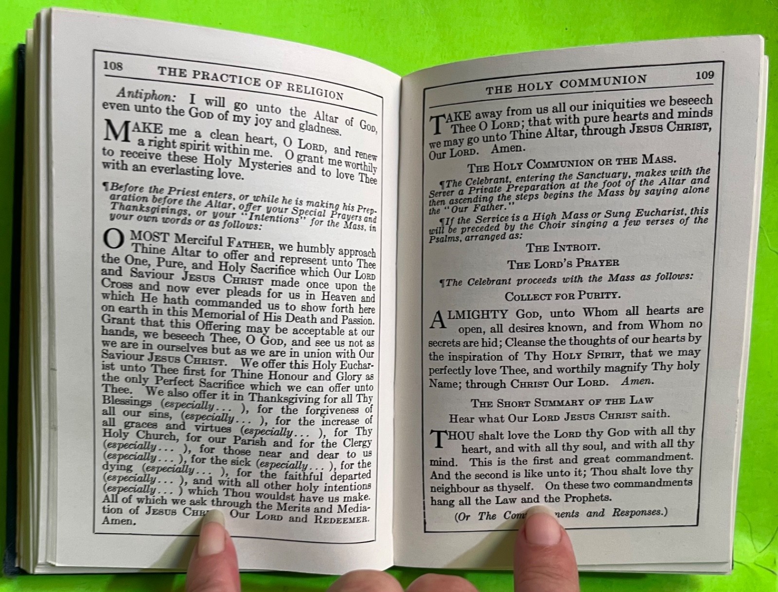 This book is a pocket manual that used to be, I am told, commonly given as a confirmation gift. It follows the most Anglo-Catholic school of Anglican devotion.