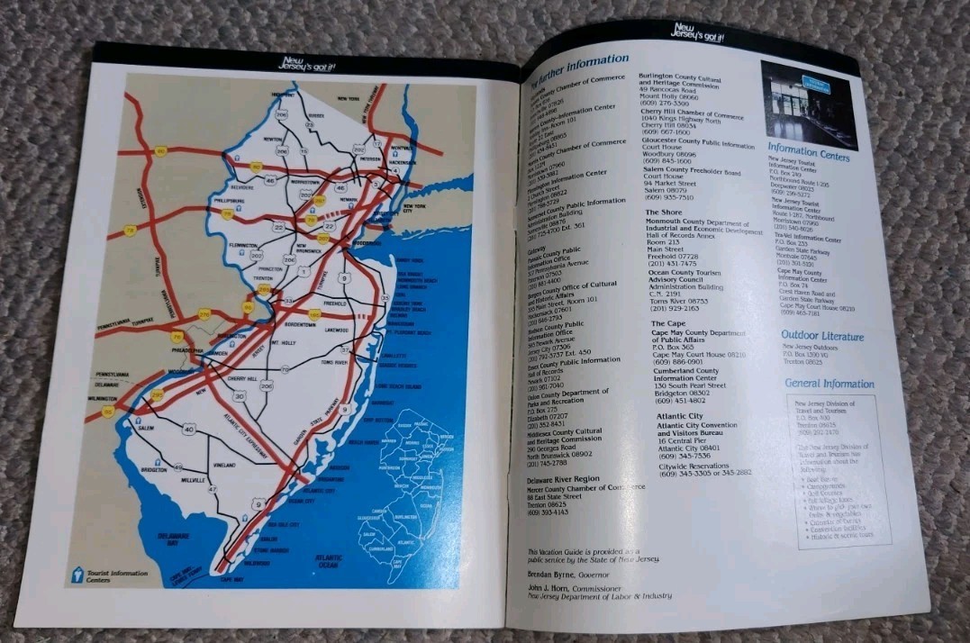 Here is a neat vintage 1980s New Jersey vacation guide. Collectible of the Garden State. Has 6 travel destination regions. Minimal wear.