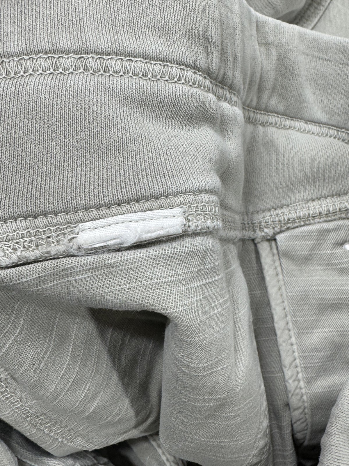 Fabric/feel: Soft woven body with subtle slub texture; wide ribbed elastic waistband