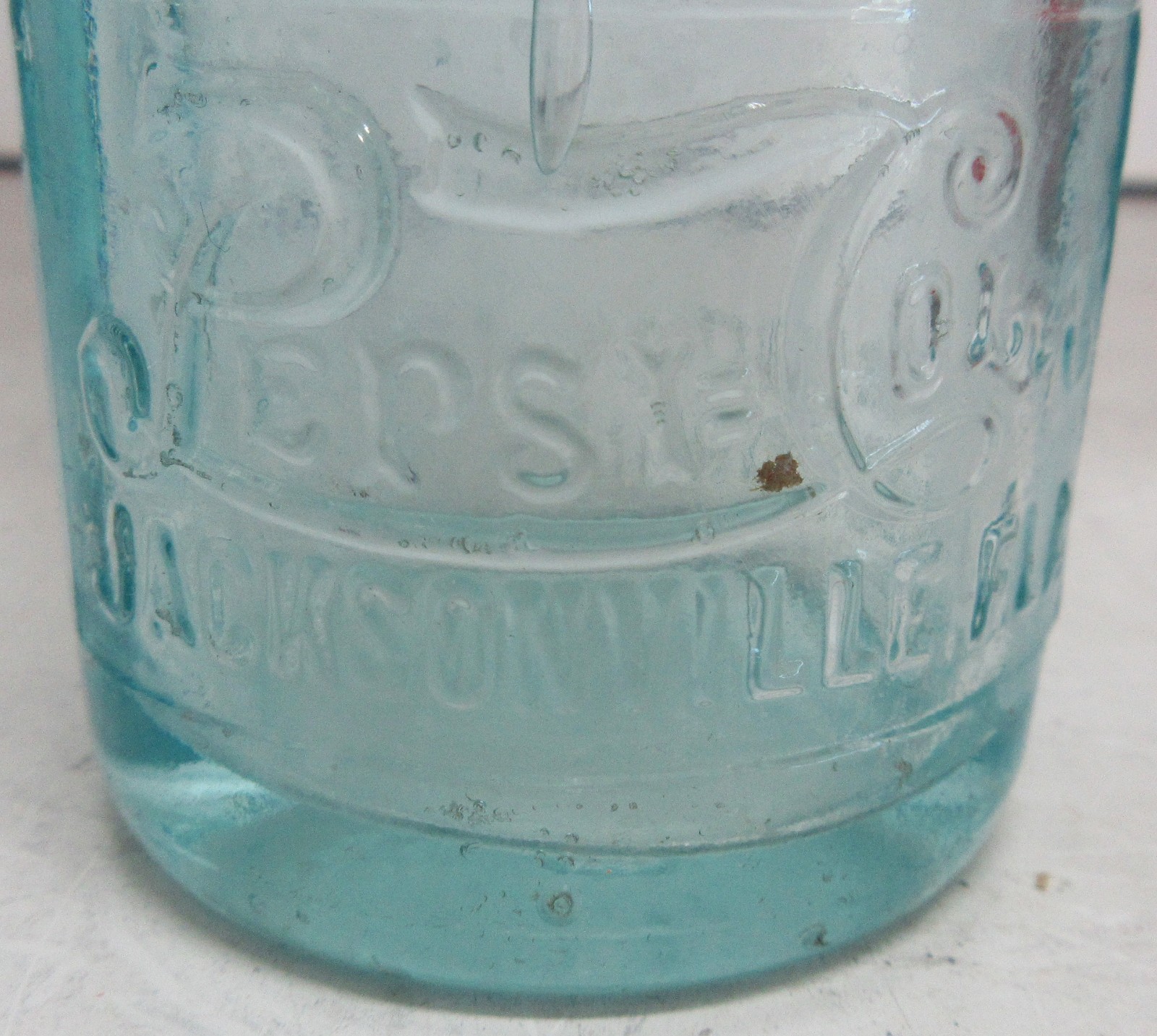 Embossed on the bottom of the bottle "Pepsi=Cola" logo "Jacksonville, Fl."