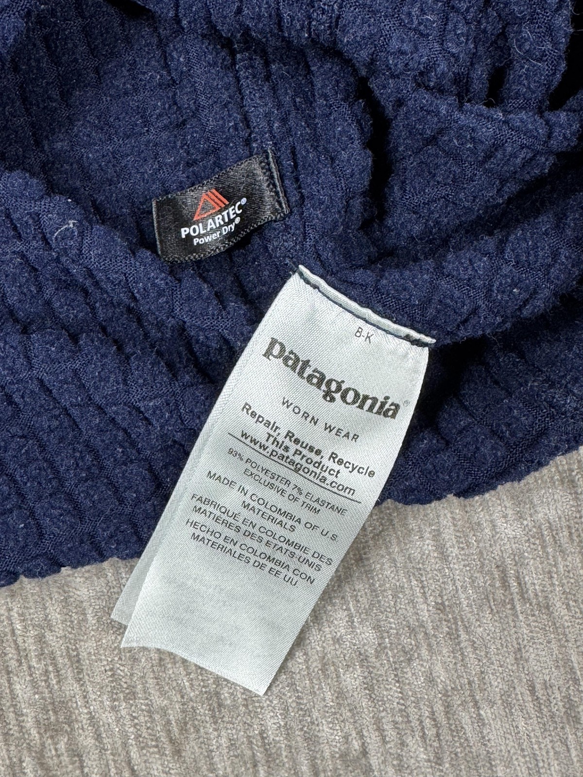 Material: Polartec Power Dry grid fleece (polyester technical fleece)