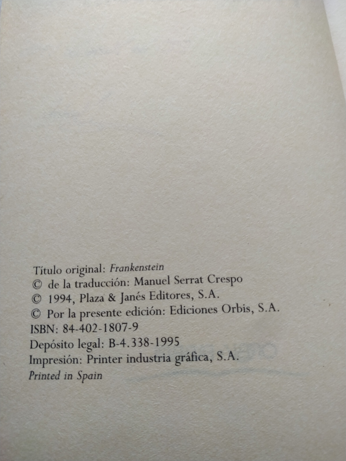 Frankenstein Mary Shelley 1995 Orbis - Spanish Book