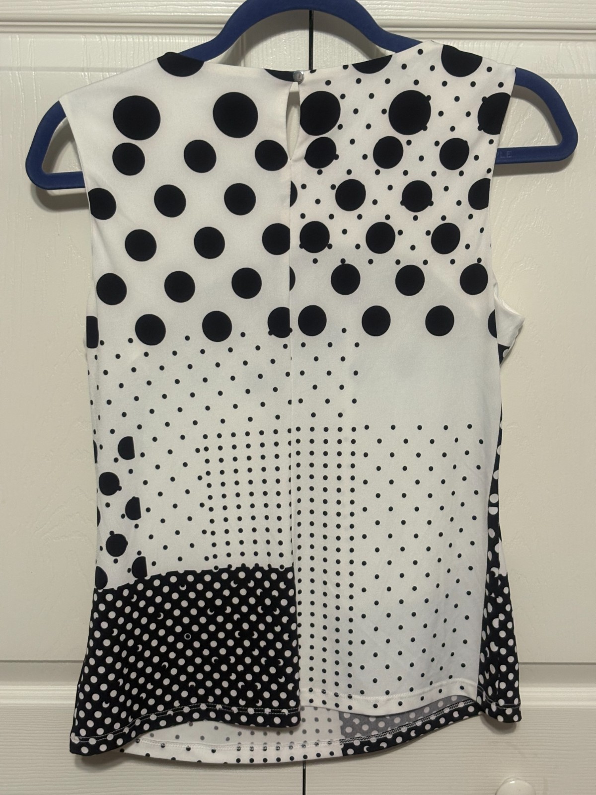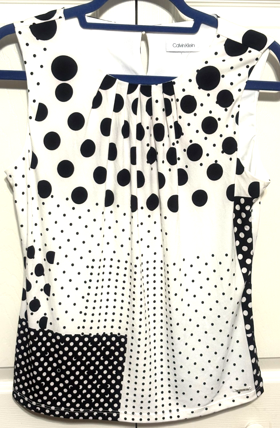 Calvin Klein S Black White Sleeveless Womens Polka Dot Shirt Top Blouse