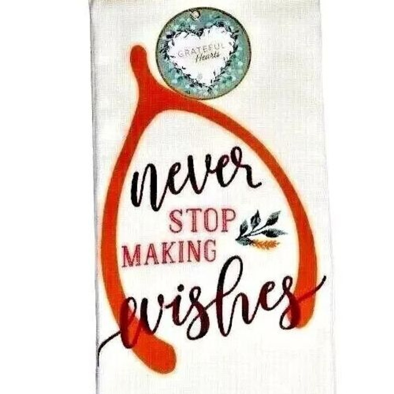 Grateful Hearts Wishbone Kitchen Towels Never Stop Making Wishes 2-Pc Gift NEW