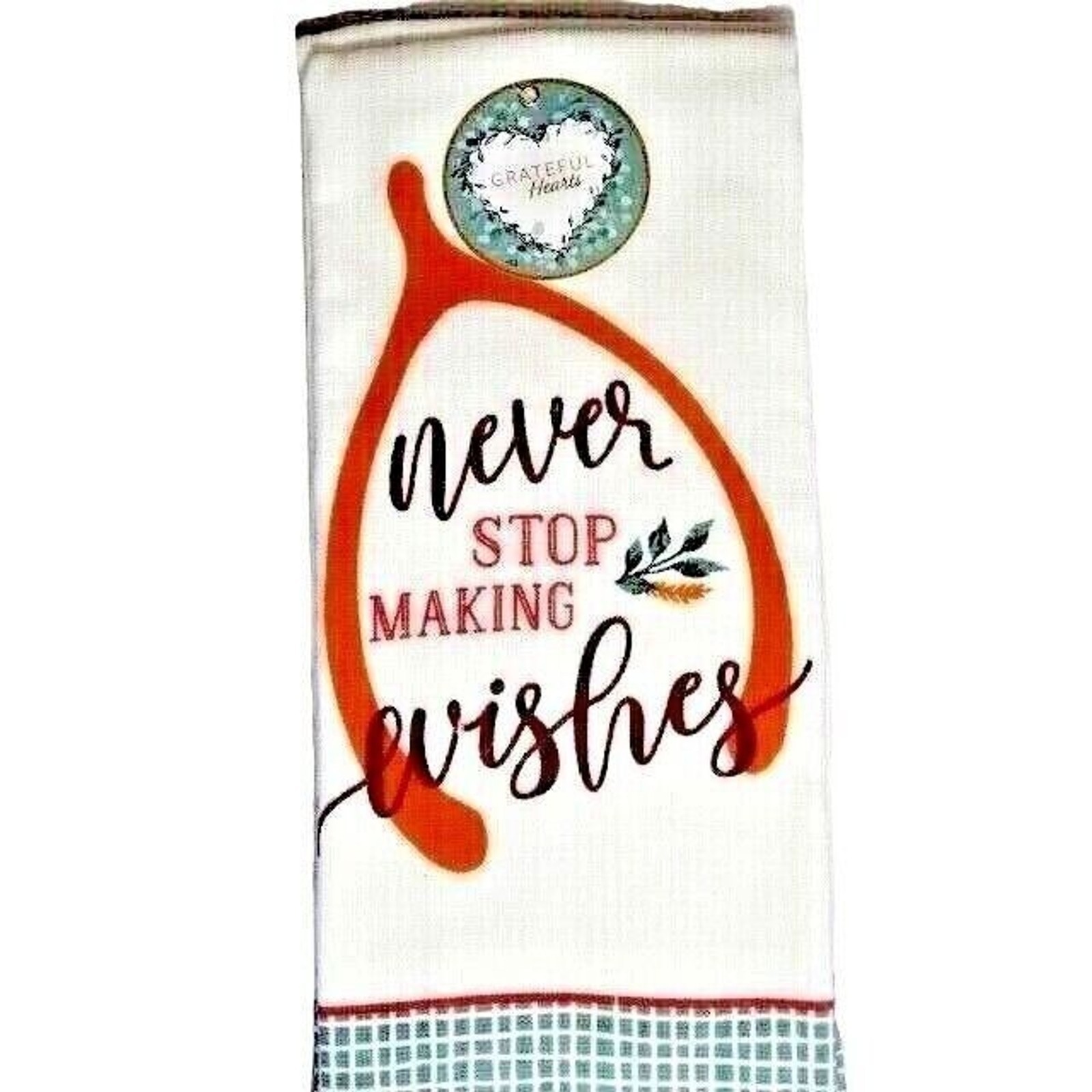 The Grateful Hearts Wishbone Kitchen Towels "Never Stop Making Wishes".