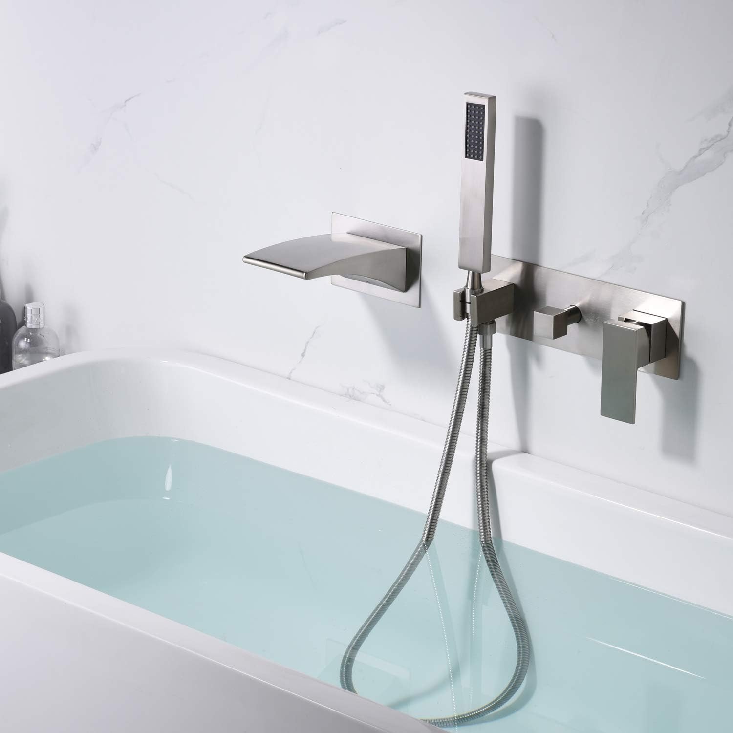 Sumerain Wall Mount Waterfall Tub Filler Spout Handheld Sprayer Brushed Nickel