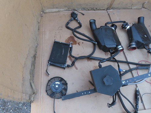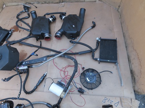 Notes: Complete used Twin Turbo Kit, Comes from a car that started and ran without issue, video of engine running available upon request. Turbo chargers are BorgWarner S300SX, Wastegates are Precision Turbo Engine, Blowoff valves are Tial. Kit also has a Seaflow Oil Pump. Intercoolers are water-cooled and have radiators and fans which mount in the quarter upper panels. ECU's were bench flashed and are included. (If you would like to purchase kit without ECU's this comes with a $1000 discount). Turbo charges are in great shape with no unusual play. There was some damage to the kit which includes: 1 radiator for the intercoolers is damaged (needs replacement). Both fans from the radiators are broken, and there is 1 water line that was damaged and a fitting on the end of it was damage. We never figured out where that line went and assue it was just a drain line for the water tank. Exhaust is straight out of the turbo chargers and is Stainless steel. We were unable to find out who built this kit, but it seems well built with top end brands.