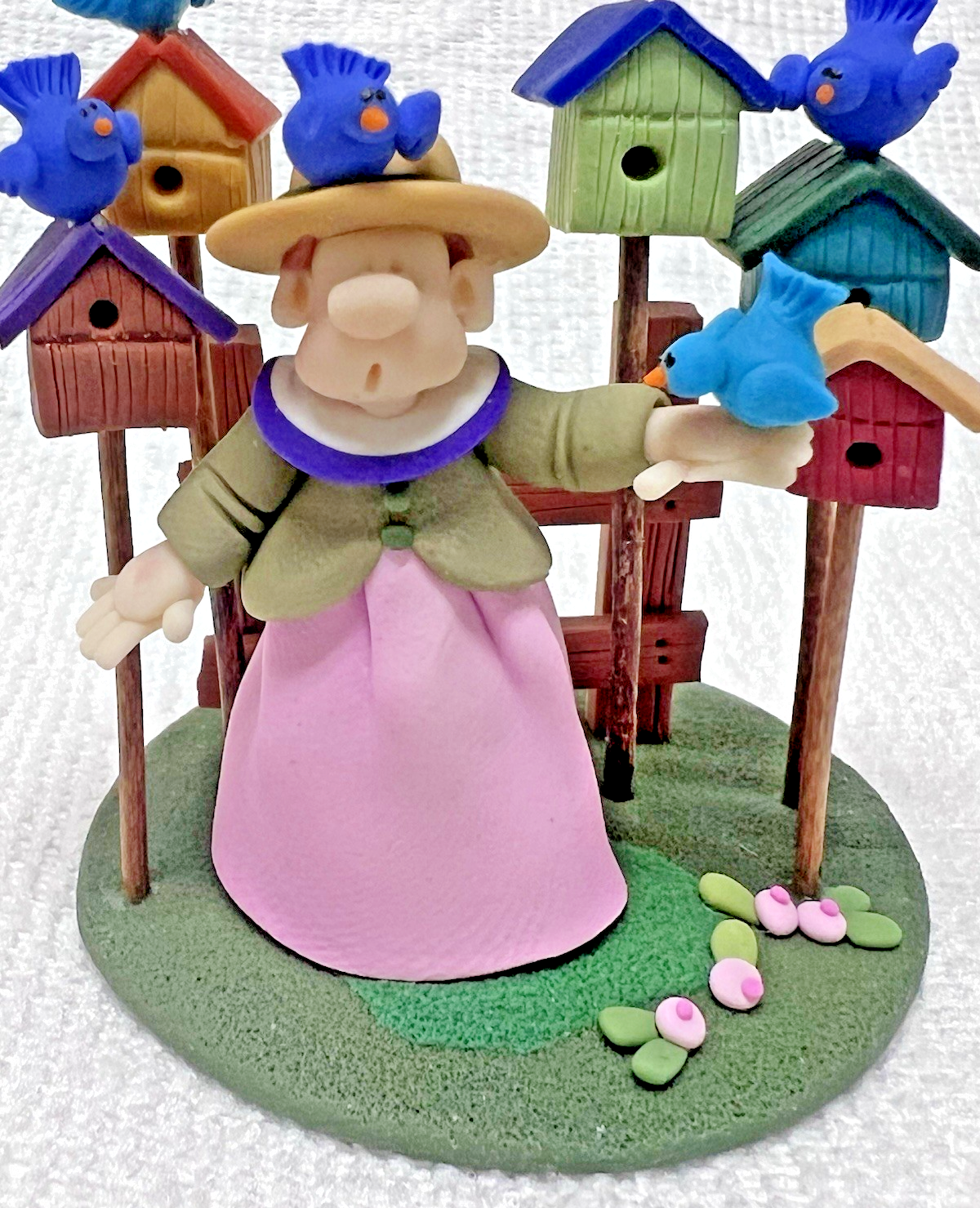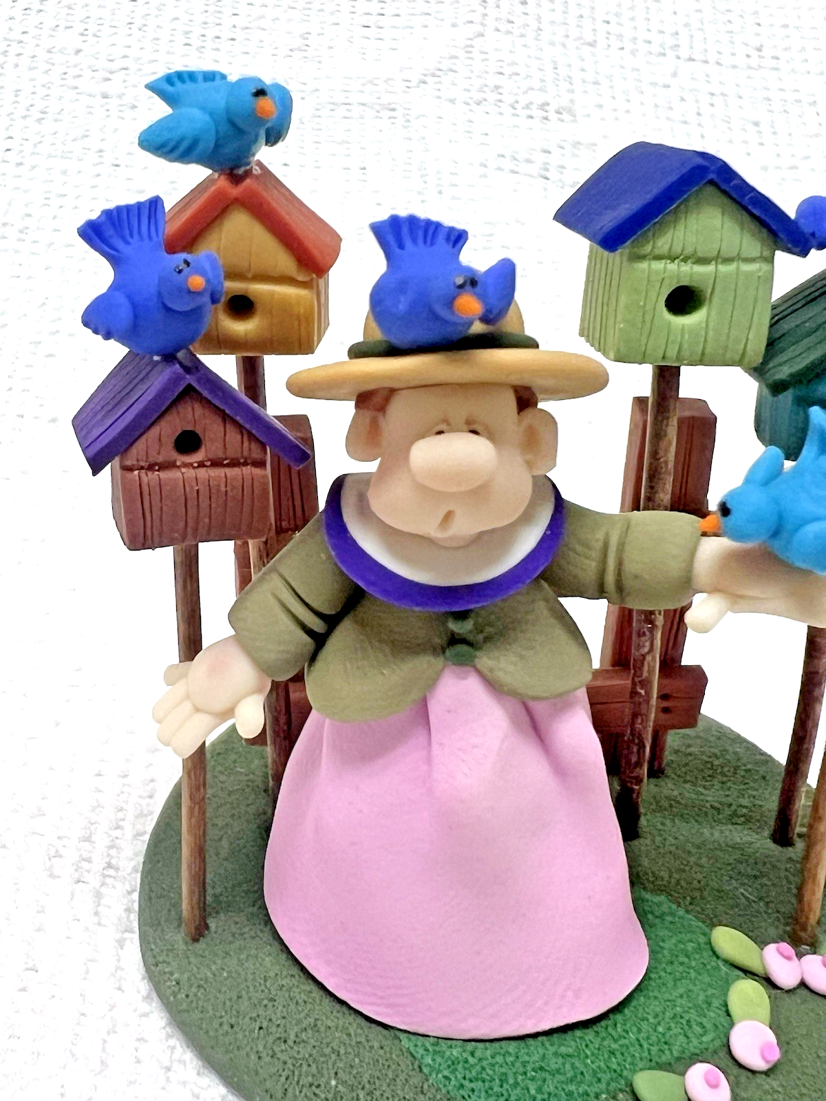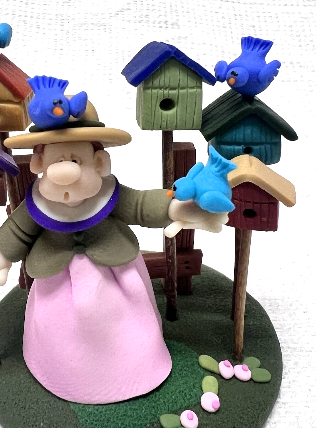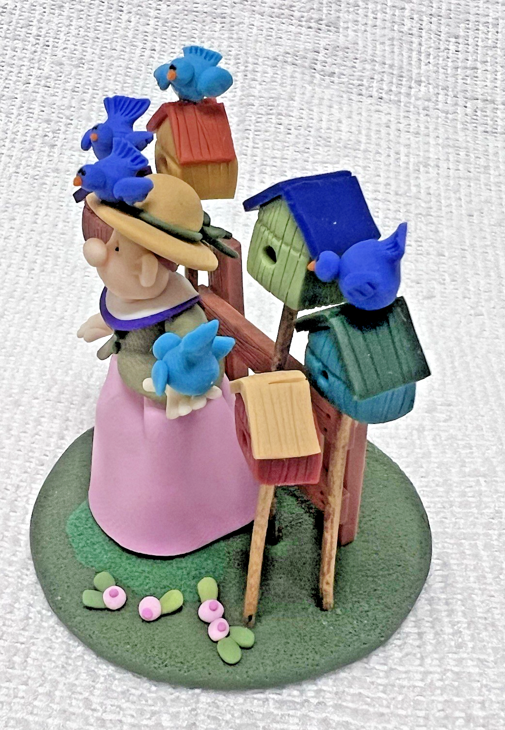 Woman w Blue Birds Bird Houses ELAYNE WATRUS SCULPTURE Coynes Company 2 1/8" tall base is 2" across